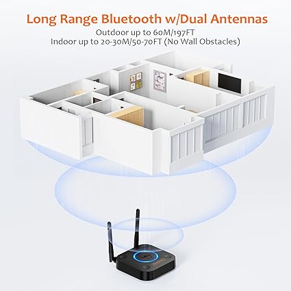 Q465 1Mii B06Pro Receptor Bluetooth de largo alcance, adaptador de audio inalámbrico HiFi Antenas dobles y largo alcance: con antenas duales y tecnología Bluetooth de clase 1, el receptor Bluetooth de largo alcance 1Mii B06Pro puede lograr un rango de hasta 197 pies (196.9 ft) de línea de visión al aire libre y hasta 50-70 pies (65.6-98.4 ft) en interiores (sin obstáculos). NOTA: el rango de operación puede verse afectado por enrutadores o antenas Wi-Fi en el receptor estéreo, etc. APTX baja latencia, HD y audio 3D: el receptor Bluetooth 1Mii B06Pro para estéreo doméstico cuenta con chip Bluetooth 5.1 para garantizar una señal de audio Bluetooth de alta fidelidad para transmisión de música a altavoces o sistemas estéreo domésticos que no tienen la capacidad. Este adaptador Bluetooth también es compatible con aptX Low Latency y aptX HD. Y el audio 3D se puede encender o apagar presionando el botón “3D” en el receptor de audio Bluetooth. El LED verde se encenderá cuando se cambie a audio 3D. Ajuste de volumen y pista: pulsa el botón de volumen en el receptor Bluetooth 1Mii B06Pro para subir y bajar el volumen. Mantenga presionado el botón de volumen durante 2 segundos para hacer la pista siguiente o anterior. (NUEVA FUNCIÓN) Opt, auxiliar y coaxial, fácil de instalar: fácil de enchufar, emparejar y usar. Conéctalo a los altavoces de la computadora, sistemas estéreo domésticos u otros sistemas de altavoces a través del cable coaxial u óptico de 0.138 in, RCA, y luego empareja el receptor Bluetooth con los dispositivos de audio Bluetooth como teléfonos inteligentes o tabletas. Después de eso, puedes disfrutar de la música. NOTA: Este producto es solo un receptor, NO un transmisor. Enviamos a toda la republica pago contra entrega. Aceptamos tarjeta de crédito y debito.