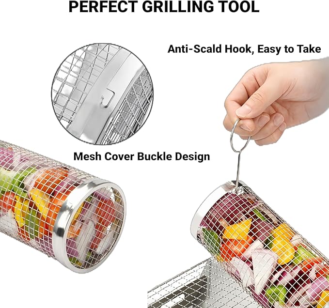 Q195.00 2 cestas enrollables para parrilla, cesta de malla de acero inoxidable. ✅【Cesta perfecta para asar con rueda】Esta cesta de parrilla puede enrollarse fácilmente en 360 grados, calefacción uniforme, muy conveniente para ahorrar tiempo. Adecuado para carne, hamburguesa, papas fritas, bistec, pescado, camarones, cebolla y mucho más. Tapa mejorada: en comparación con otras parrillas de barbacoa, soldamos la tapa a la cesta y diseñamos dos cierres adicionales en la tapa para garantizar un cierre hermético. Simplemente abrocha los dos botones en el exterior de la canasta, y tu deliciosa comida estará cerrada de forma segura, sin riesgo de caída. Después de varios usos, ajusta los cierres hacia adentro para asegurar un ajuste apretado. ✅【¿Cómo usarlo?】Simplemente coloca la comida preparada en las cestas de la parrilla, luego sujeta la tapa en la parte superior de la parrilla, finalmente, se puede asar en fuego de carbón u otros. Para mantener el uniforme de alimentos calentando, puedes utilizar nuestro tenedor en lugar de girar la mano la parrilla de barbacoa, finalmente, espolvorea algunos de tus condimentos favoritos y utiliza guantes antiquemaduras o nuestros dos ganchos para quitar esta canasta de parrilla para disfrutar de tu deliciosa comida, no es difícil en absoluto. Calidad prémium: segura y fiable: la cesta de parrilla con ruedas está hecha de materiales de alta calidad, incluyendo acero inoxidable 304, lo que garantiza seguridad y fiabilidad. Se somete a estrictas inspecciones de calidad, que no reacciona con los alimentos, preservando los sabores de los ingredientes. Ya sea la selección de materiales o el control de los procesos de fabricación, nos adherimos a los más altos estándares para garantizar tu experiencia de parrilla segura y agradable. Satisfacción garantizada: estamos absolutamente seguros de que no te arrepentirás de tu compra. Es un regalo perfecto para tus amigos y familiares que aman hacer barbacoa. Enviamos a toda la republica pago contra entrega. Aceptamos tarjeta de crédito y debito.