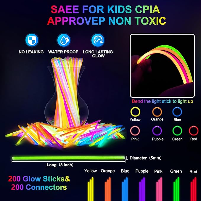 Q445.00 282 piezas de suministros de fiesta que brillan en la oscuridad Suministros de fiesta que brillan en la oscuridad: nuestros suministros de fiesta que brillan en la oscuridad incluyen 18 varillas de espuma, 18 lentes LED, 200 varillas brillantes, 30 luces para los dedos, 8 diademas de orejas de conejo y 8 diademas LED de orejas de gato, colores brillantes y luces intermitentes, a niños y adultos les encantará usar nuestras decoraciones de fiesta brillantes para iluminar la fiesta, los recuerdos de fiesta brillantes crearán un ambiente colorido y maravilloso Recuerdos de fiesta que brillan en la oscuridad: este paquete de fiesta de palo brillante es adecuado para todo tipo de ocasiones, incluyendo cumpleaños, bodas, fiestas en la piscina, conciertos, campamentos, fiestas de graduación, carnavales, raves, eventos deportivos, espectáculos, fiestas del 4 de julio, Halloween, Año Nuevo, Pascua, Navidad, parques temáticos para adultos y niños. Te sorprenderá el efecto de fiesta que nuestros suministros de fiesta brillan en la oscuridad Decoraciones de fiesta de neón: estos lentes LED incluyen 5 colores y pueden parpadear en 3 modos. Las varillas luminosas miden 8 pulgadas de largo con conectores, se pueden hacer en cualquier forma que desees, ya sea que te gusten pulseras y collares. Las varillas luminosas de espuma están hechas de espuma suave favorable al medio ambiente y plástico de buena calidad, con 3 modos de parpadeo colorido. Nuestras luces de dedos incluyen 4 colores, y llevarlas te permitirá bailar tus manos. Estas diademas LED de orejas de conejo y diadema de orejas de gato, todas con 3 modos y 7 colores, nuestros suministros de fiesta de varillas brillantes de espuma pueden satisfacer todas tus necesidades de fiesta Excelente seguridad y calidad: estos suministros de fiesta de neón están hechos de buena calidad, excelentes materiales que pueden soportar estiramientos, torsiones y torneados. El paquete de fiesta a granel tiene un diseño resistente que los hace irrompibles, por lo que nuestros suministros de fiesta que brillan en la oscuridad no se rompen ni gotean tan fácilmente como productos similares en el mercado Servicio de satisfacción: OLUPP concede gran importancia a la experiencia del cliente, si encuentras algún problema durante el uso de nuestros recuerdos de fiesta iluminados, por favor háganoslo saber, le proporcionaremos un servicio posventa lo antes posible Enviamos a toda la republica pago contra entrega. Aceptamos tarjeta de crédito y debito.