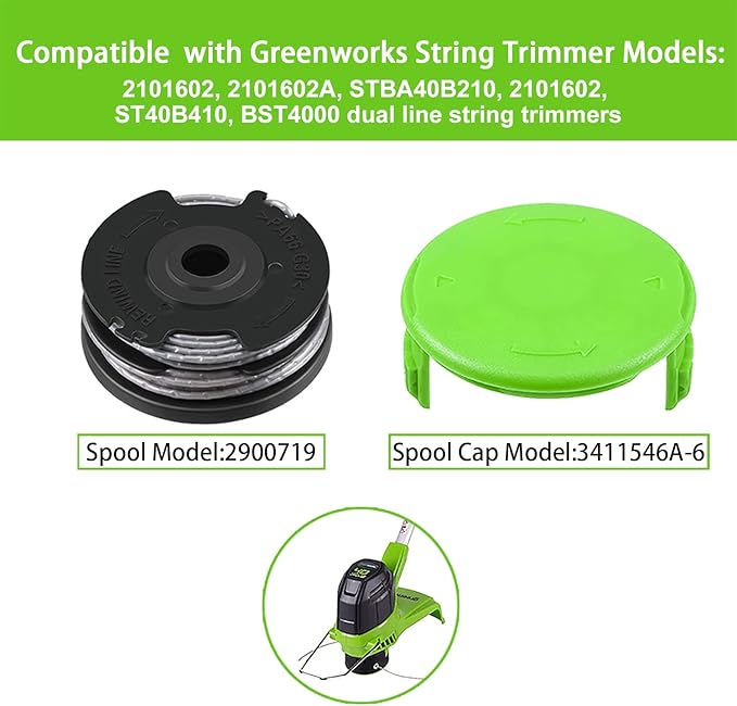 Aplicable para recortadoras Greenworks: 2101602, 2101602A, STBA40B210, 2101602, ST40B410, BST4000 recortadoras de cuerda de doble línea
