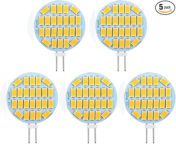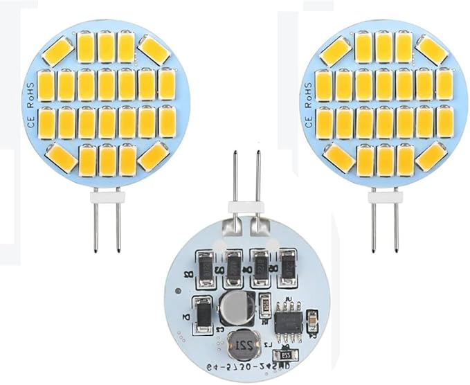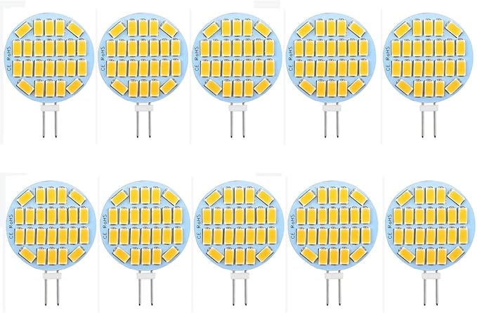 Q185.00 6 bombillas LED G4 de 12 V – 24 V CA/CC 3 W LED de clavija lateral, equivalente a 30 W de repuesto Equivalente a reemplazo de bombilla halógena de 30 W, no regulable G4 24 LED 5730 SMD, blanco cálido 3000K Enviamos a toda la republica pago contra entrega. Aceptamos tarjeta de crédito y debito.