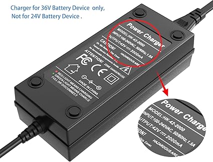 Q165 Adaptador de corriente de 42V 2A PowerFast, Conector en línea de 3 clavijas para Sports Mod de 36V Cargador universal completamente nuevo de 42V 2A para dispositivo de batería de 36V, no para batería de plomo-ácido. Entrada: 100-240 VAC, 50/60 Hz, 1.5 A, Salida: 42 V — 2000 mA. Enchufe de 3 puntas, verifique antes de realizar el pedido, indicador LED: luz roja significa carga, luz verde significa carga completa o desconexión. Protección múltiple: sobrevoltaje, sobrecorriente, cortocircuito, protección contra sobrecarga. Enviamos a toda la republica pago contra entrega. Aceptamos tarjeta de crédito y debito.