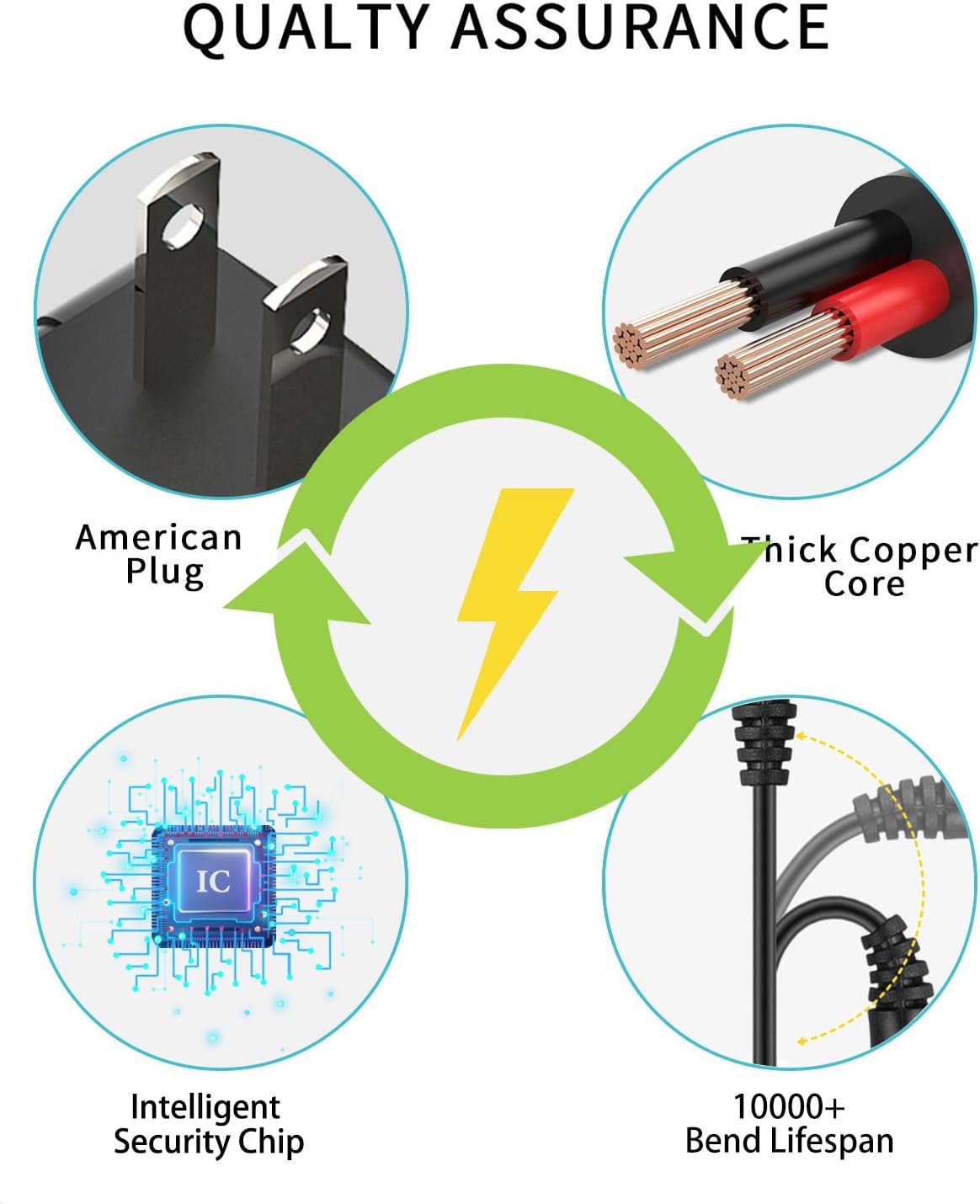 [Protección de seguridad]: Este adaptador se fabricó con materiales de la más alta calidad. Retardante de llama de grado V-0, OVP, OCP, protección SCP (OVP: Protección de salida de sobrevoltaje. OCP: Protección de salida sobre corriente. SCP: Protección de salida de cortocircuitos)