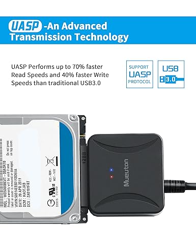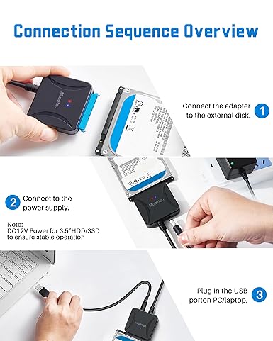 Q195 Adaptador SATA a USB, adaptador de disco duro USB 3.0 (No incluye adaptador pequeño) añade almacenamiento a tu laptop conectando un SSD o disco duro de 3.5″ o 2.5″ con este cable SATA a USB. Puede conectarse a una unidad externa para agregar almacenamiento, realizar copias de seguridad, crear imágenes de disco, realizar restauraciones de datos y transferir contenido a su computadora portátil. Velocidades de transferencia rápidas: el adaptador SATA a USB soporta velocidades de transferencia de datos USB 3.0 de 5 Gbps. Sin embargo, puede experimentar velocidades de transferencia hasta un 70% más rápidas que el USB 3.0 tradicional cuando lo conecta a una computadora que también admite UASP. Conéctate desde cualquier lugar: el lector de disco duro es una solución portátil que cabe perfectamente en una bolsa de computadora portátil sin la necesidad de energía externa. Enchufe y reproduce: el adaptador de disco duro le permite cambiar fácilmente entre unidades sin instalar la unidad en un gabinete. Es plug and play y no requiere ningún conductor. Adaptador de alimentación de 12 V y 2 A incluido: el cable conector USB SATA de 22 pines está equipado con un puerto jack de CC que puede proporcionar suficiente energía. El adaptador de corriente puede conectar discos duros SATA de 2.5″ y 3.5″. Tenga en cuenta que una fuente de alimentación es absolutamente necesaria cuando se conecta un disco duro SATA de 3,5″. Enviamos a toda la republica pago contra entrega. Aceptamos tarjeta de crédito y debito