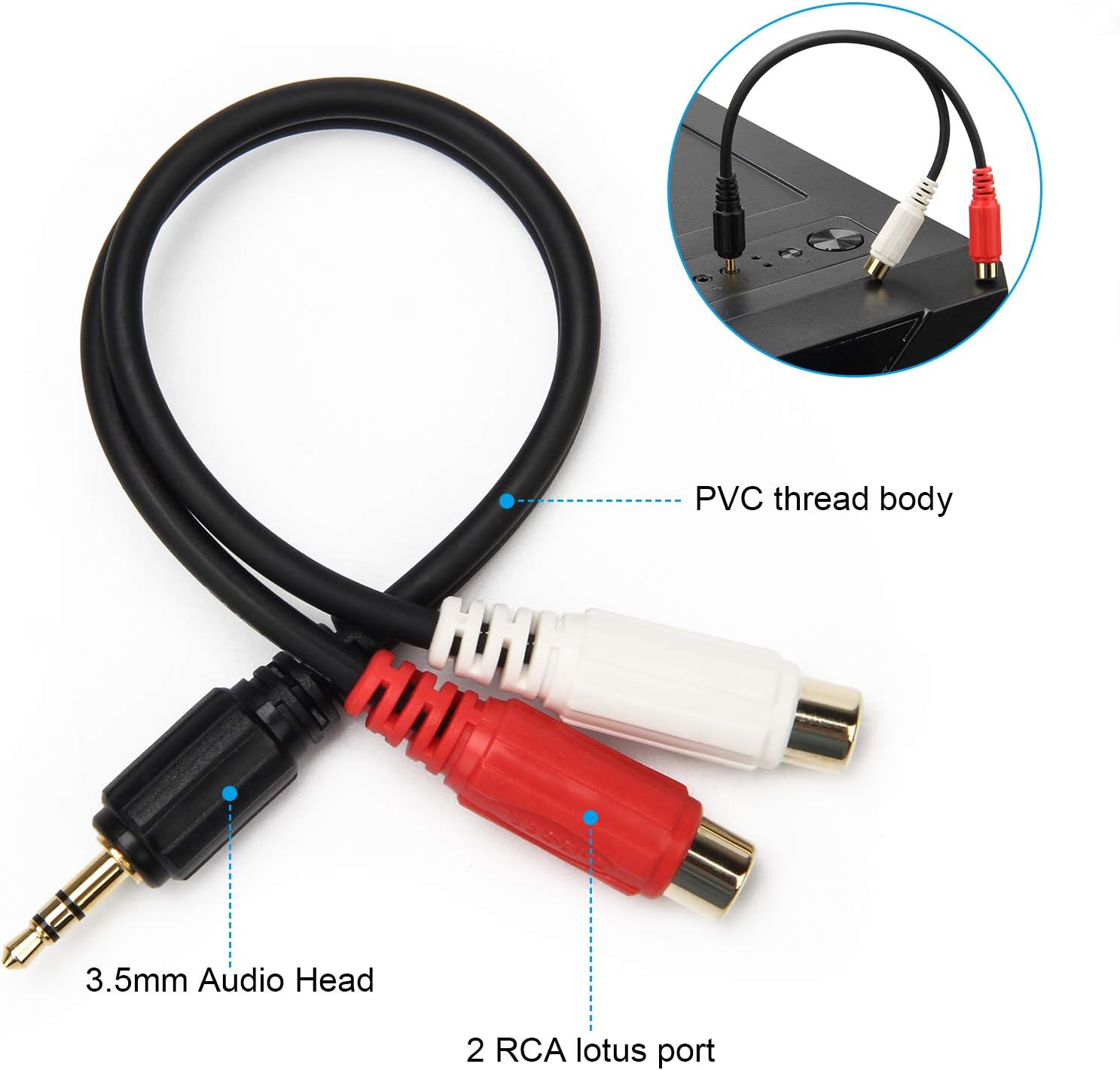 Q125 AHIER 0.138 in oro 1/8 estéreo mini jack macho a 2 hembra RCA adaptador de audio (7.9 in)
