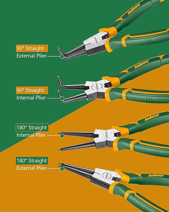 - Calidad superior: los alicates de anillo de presión Jadever están hechos de acero Cr-V, ofreciendo una resistencia, dureza y durabilidad superiores.