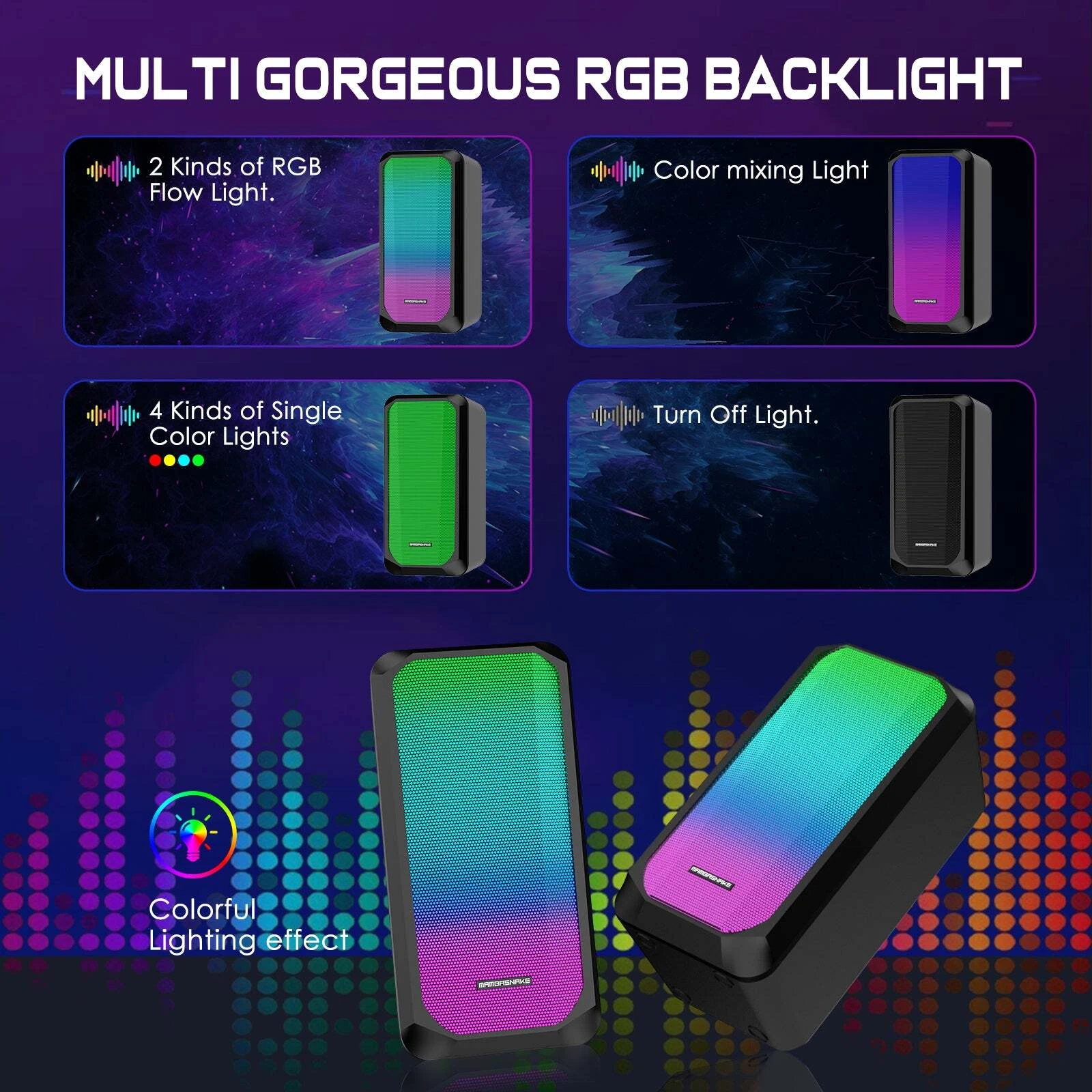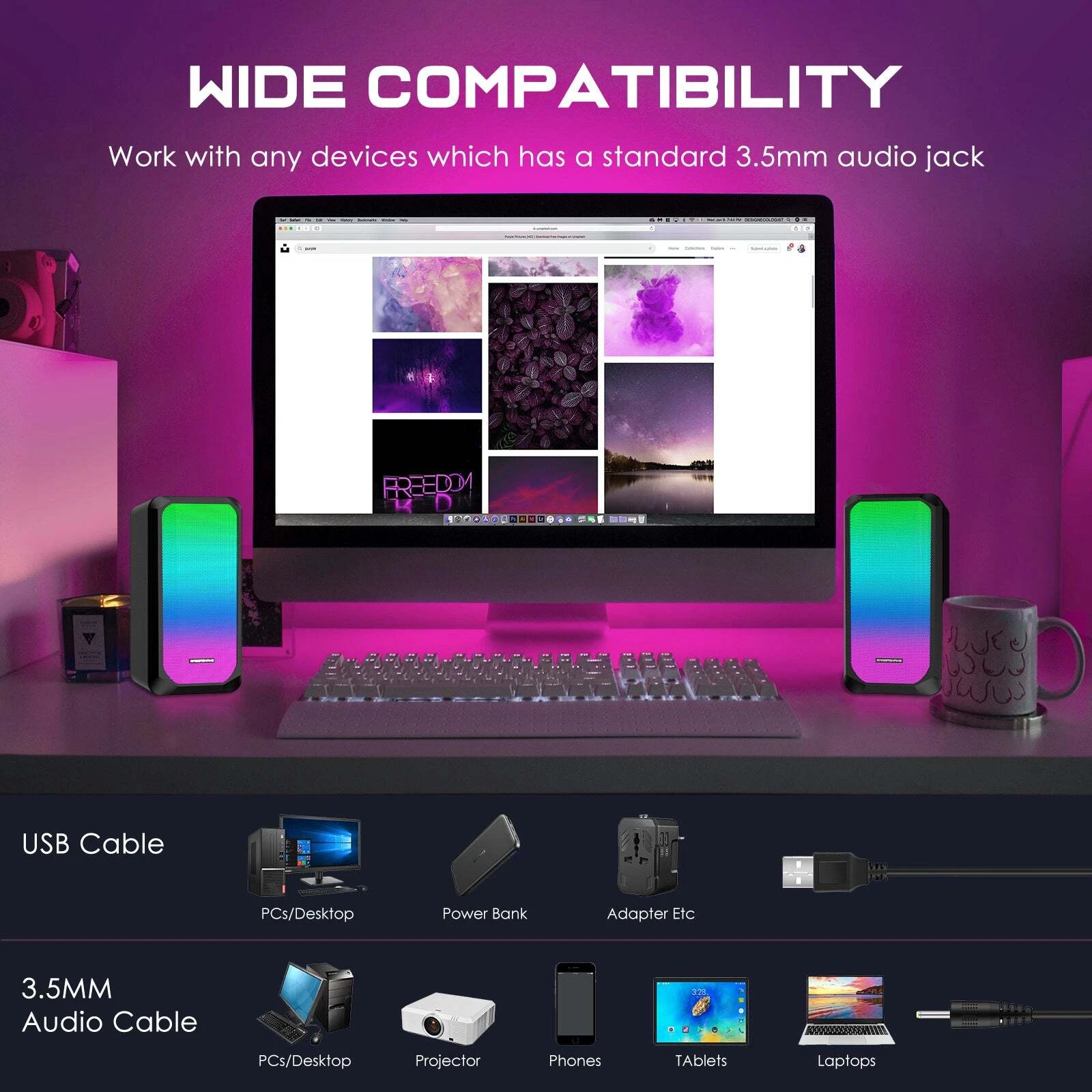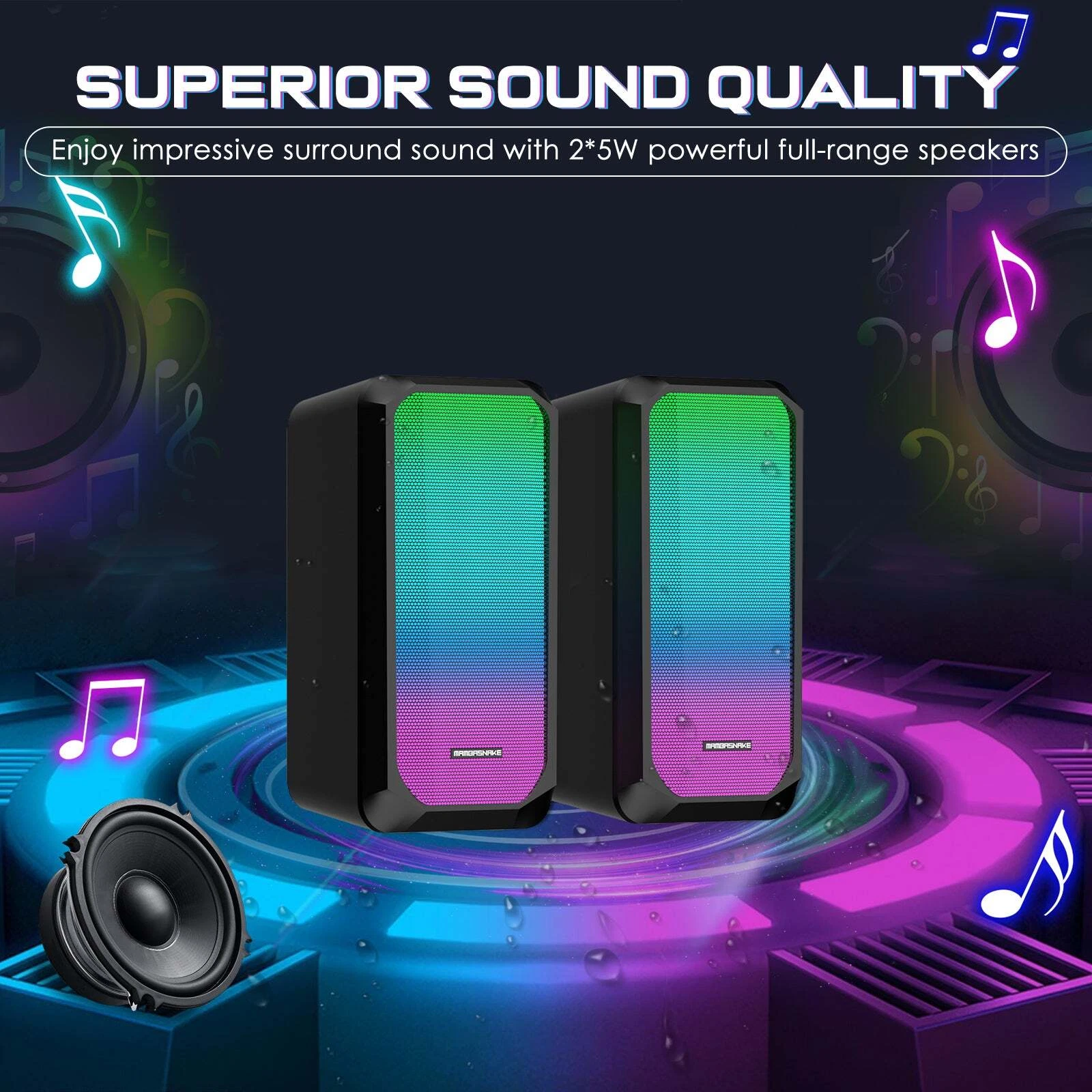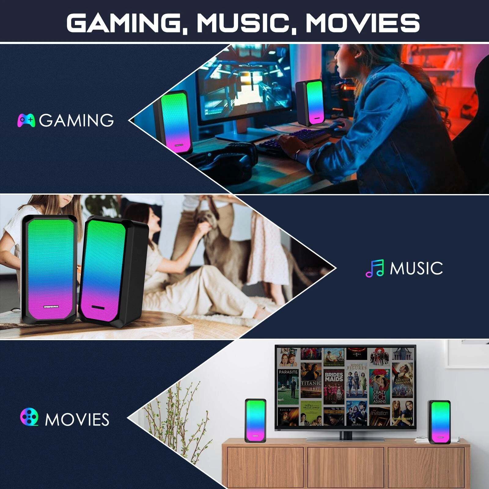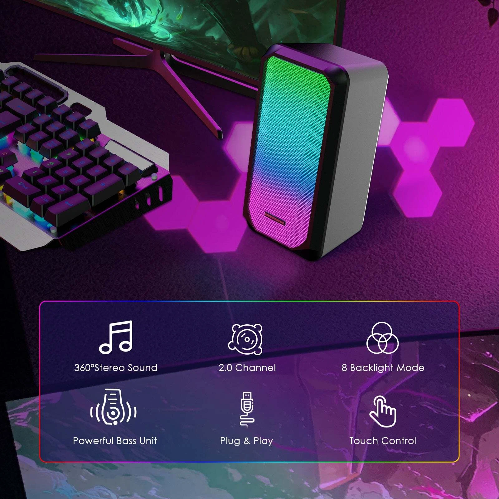 【Excelente audio estéreo】2 altavoces estéreo balanceados de 5 W integrados con un controlador de sonido avanzado y un núcleo estéreo mejorado de 2.0 canales de rango completo. Los altavoces RGB con cable ofrecen un sonido estéreo nítido para que disfrutes de tu música o juegos sin distorsiones, distracciones ni ruidos molestos.