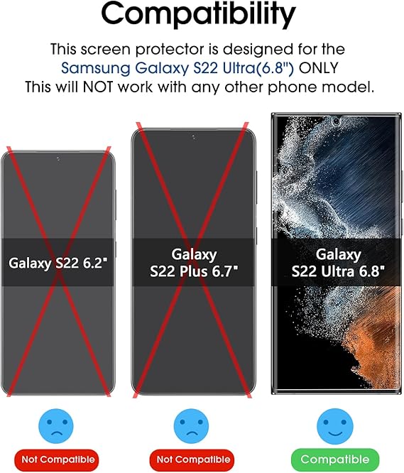 Vidrio curvado 3D y sensibilidad táctil de compatibilidad completa: este protector cubre los bordes redondeados del S22 Ultra con revestimiento oleofóbico de acabado fino para reducir las huellas dactilares y proporciona resistencia a los arañazos S22 Ultra, 99.9% de transparencia ultra clara de alta definición, protección contra caídas y compatibilidad total con la sensibilidad de la pantalla táctil.