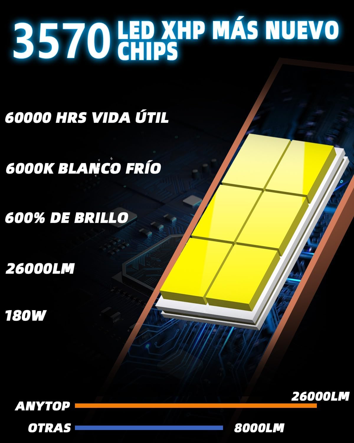 Q220 ANYTOP H11 H8 H9 Led Bombillas para Delanteros Faros,180W 26000LM 6000K 600% Brillo