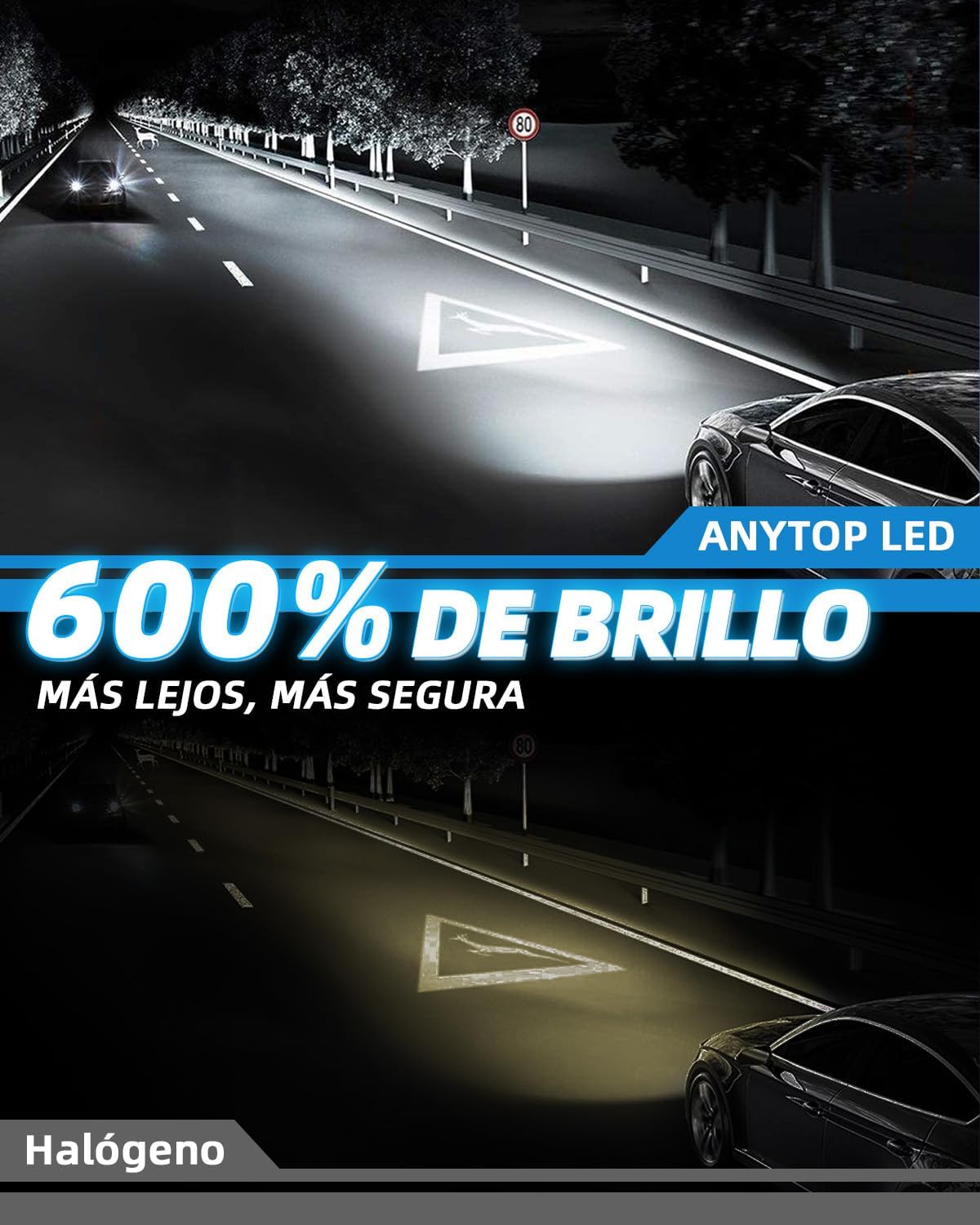 【IP68 Impermeable】Es resistente al agua y al polvo, y no teme al mal tiempo. Puede funcionar de manera estable en días de lluvia, niebla, nieve y tormentas de arena.Perfecto para actualizar tu halógeno tenue