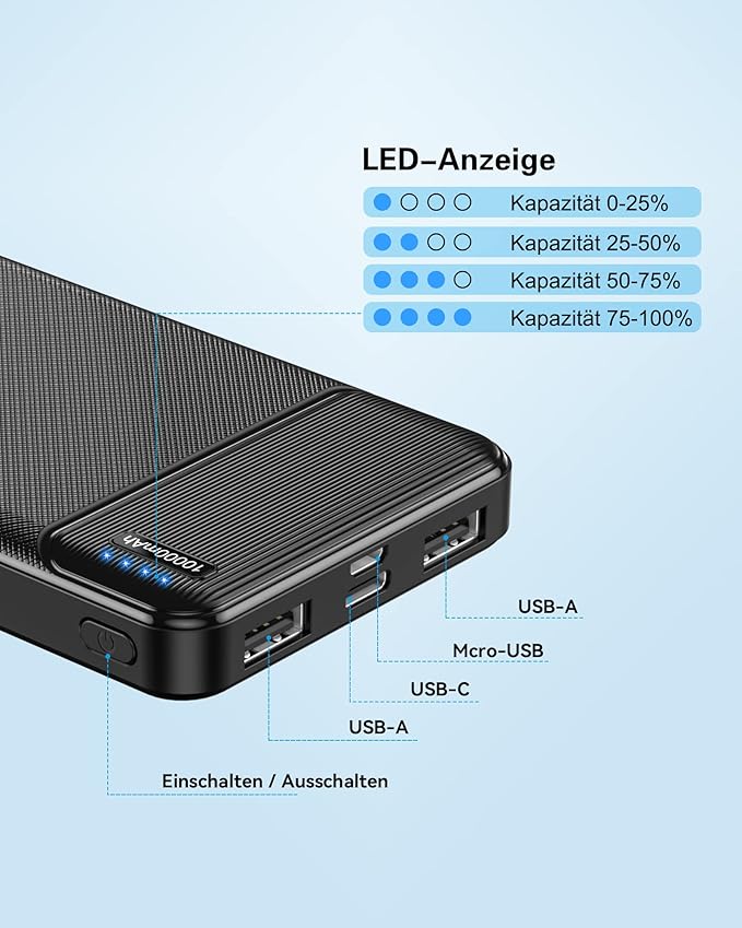 Q385.00 AsperX Power Bank, 2 Piezas 10000mAh Batería Externa Carga Rapida, Batería Portatil USB C Input Dos Power Bank de 10000 mAh: Batería externa carga rapida de 10000 mAh son lo suficientemente pequeños como para caber en cualquier bolsillo o mochila. Cada uno carga el iPhone X 2,4 veces, el iPhone 8 3,6 veces y el Samsung Galaxy S9 2,2 veces Tres puertos para carga simultánea: La batería externa de carga rápida tiene un puerto USB-C y dos puertos USB-A que pueden cargar tres dispositivos al mismo tiempo, lo que te permite compartirlo con tu familia y amigos Puerto USB-C IN&OUT: Power bank 10000mah con USB-C IN&OUT funciona perfectamente con dispositivos USB-C. También tiene dos salidas USB-A para reconocer todos los dispositivos conectados y distribuir eficientemente cargas de hasta 5V 2.4A Protección de seguridad: la Powerbank tiene una carcasa exterior fabricada con materiales seguros y no inflamables y una batería integrada de iones de litio de alta calidad, que evita el sobrecalentamiento de los dispositivos y los daños en la batería Contenido del paquete: Dos power banks de 10000 mAh (negro y negro), dos cables de carga USB-C, un manual de instrucciones en español. Si tiene alguna pregunta, no dude en ponerse en contacto con nosotros en cualquier momento y le responderemos en 24 horas Enviamos a toda la republica pago contra entrega. Aceptamos tarjeta de crédito y debito.