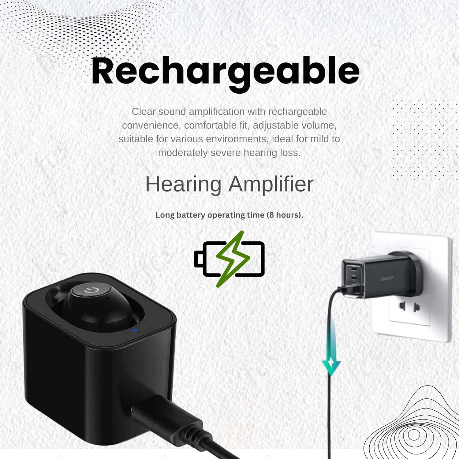 Q345 Audífono recargable FCS K-81 CIC con cargador, amplificador de sonido personal Audífono recargable FCS K-81 ITE con cargador. Rango de ajuste 0-80 dB SPL. Tiempo de carga: 2 horas, Tiempo de funcionamiento de la batería: 8 horas Salida máxima de sonido: ≤112 dB ± 3 dB, ganancia máxima (dB): 30 dB ± 5 dB Distorsión armónica total de la onda: ≤ 10 %. Rango de frecuencia: 450-3500 Hz. Ruido de entrada: 29 dB ± 3 dB. Audífono apto para usuarios con pérdida auditiva de leve a moderadamente severa. (Características adicionales: Estuche de carga con cable tipo C y tapones para los oídos) Enviamos a toda la republica pago contra entrega. Aceptamos tarjeta de crédito y debito.
