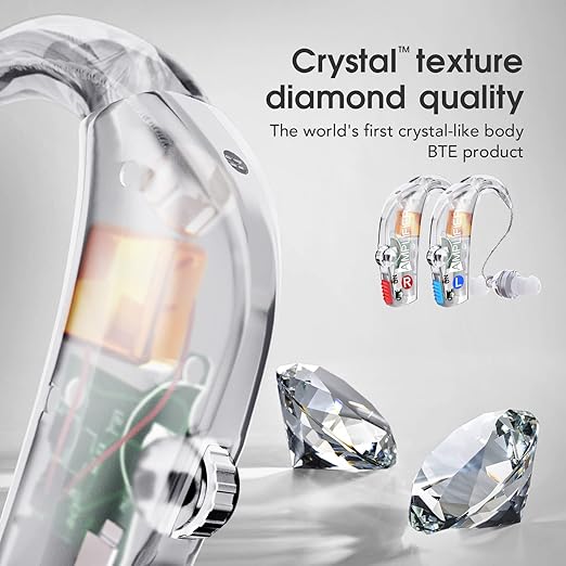 ❤❤Material ABS transparente❤❤: estos audífonos tienen una textura cristalina y están hechos con material ABS de alta calidad. El primer producto BTE de cuerpo cristalino del mundo. El exclusivo amplificador de audífonos se ve a la moda y es adecuado para todos.