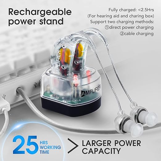 Volumen amplificado ajustable: audífonos transparentes con 4 niveles de volumen diferentes ajustables, el cliente puede ajustar los niveles de volumen de acuerdo a sus necesidades.