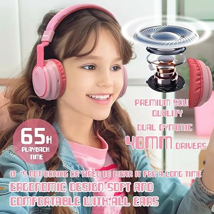 Q165 Auriculares para niños, Bluetooth 5.3, inalámbricos, ligeros, carga rápida, 68 horas de tiempo Límite de volumen de seguridad: 74/85/94dB conmutado por protección con un solo clic (presione el botón “dB” para cambiar), estos auriculares protegen a sus hijos de daños auditivos. Modo de 74dB para niños de 3 a 6 años, 85dB cumple con niños en edad escolar, 94dB requiere supervisión parental. Adecuado para niños pequeños/niños: Para niños de 2 a 16 años (jóvenes) Materiales duraderos que pueden soportar el juego rudo de los niños. Las suaves almohadillas para las orejas se ajustan perfectamente a las orejas de los niños y proporcionan una experiencia de escucha cómoda. Modo inalámbrico o con cable: modo inalámbrico de control fácil con Bluetooth, o modo con cable (cuando se agote la batería) con conector de audio de 3.5mm, fácil de emparejar con la mayoría de dispositivos Bluetooth: para iPhone, iPad/teléfonos móviles Android/PC y tabletas. Sonido estéreo de cristal – Divisores de 40 mm, producen sonido de alta calidad. Diseño plegable: la diadema ajustable se puede adaptar a la forma de tu cabeza para un ajuste perfecto. Lleva tus audífonos a donde quiera que vayas, simplemente dóblalos. Enviamos a toda la republica pago contra entrega. Aceptamos tarjeta de crédito y debito.