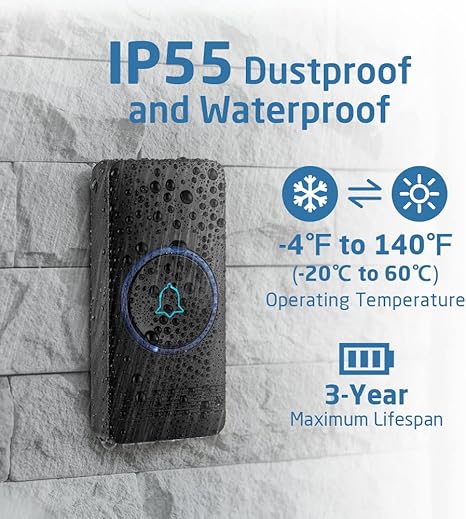 IP55 resistente al agua: alta calificación impermeable de IP55 y funcional entre -4°F (-4.0 °F) y 140°F (140.0 °F) para funcionar incluso en las condiciones climáticas más duras
