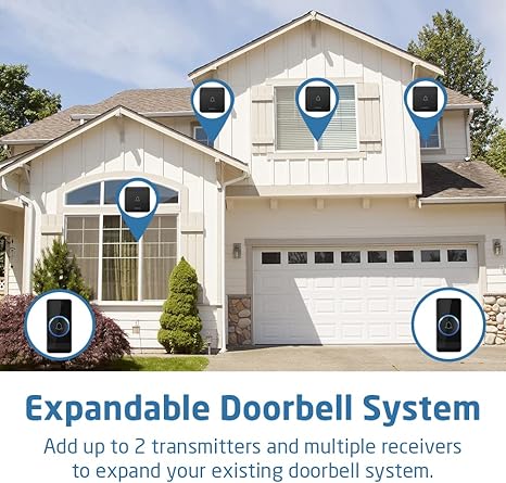 Sistema de timbre expandible: solo compatible con tu sistema de timbre AVANTEK con un máximo de 2 transmisores y múltiples receptores enchufables; es una solución simple y sin complicaciones para tu puerta delantera y trasera, por lo que nunca te perderás una visita