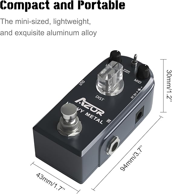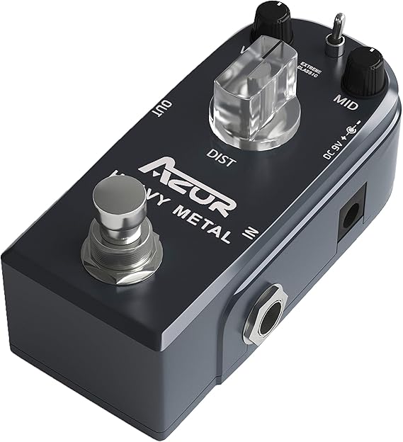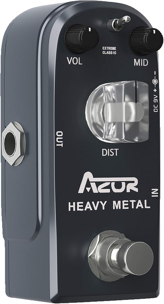 Q285 AZOR AP-321 – Pedal de guitarra de distorsión de metal pesado con control de 3 modos, con aleación Pedal de guitarra de metal pesado: el pedal de metal pesado AZOR es un pedal de distorsión recién desarrollado para dar ese clásico sonido de distribución de distorsión de metal pesado 3 controles: con 3 pomos funcionales (VOL/DIST/MID) te ofrece todas las opciones de tono necesarias para reproducir un sonido de distorsión de metal pesado y esa distorsión clásica identificable Interruptor selector de 2 vías: extremo/clásico, permite una sutil variación desde el tono clásico más comprimido hasta el sonido extremo moderno más abierto. Estilo mini: pequeño, ligero y exquisito. Chasis de aleación de aluminio duradero y ligero. Fuente de alimentación: adaptador de 9 V de CC de centro negativo (no incluye adaptador de corriente). Enviamos a toda la republica pago contra entrega. Aceptamos tarjeta de crédito y debito.