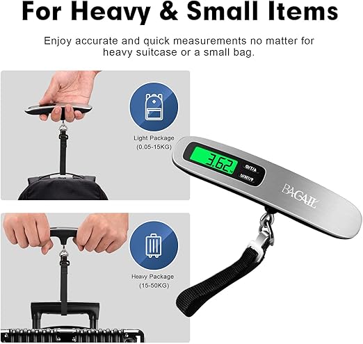 Q145 BAGAIL Báscula digital de equipaje, báscula de equipaje colgante de 110 libras con pantalla LCD