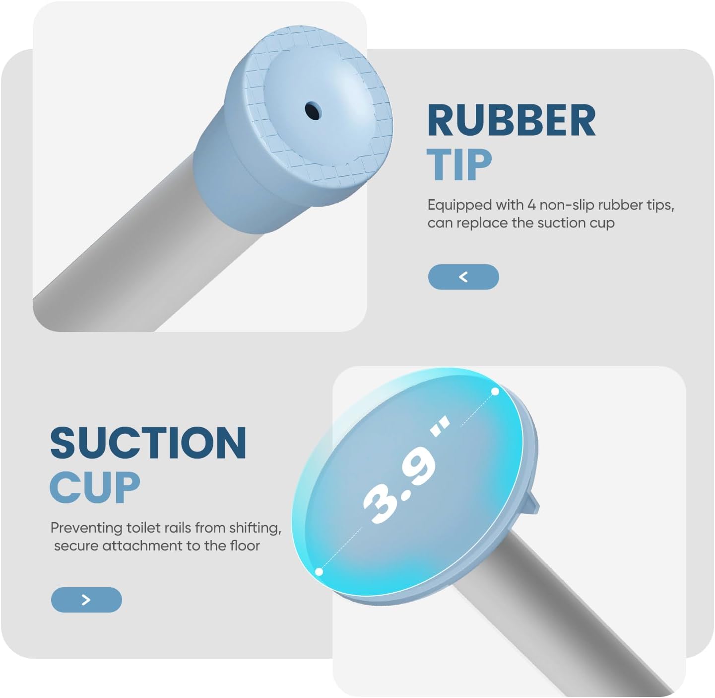 Diseño ajustable de ancho, se adapta a cualquier inodoro: los rieles plegables para inodoro se pueden utilizar con cualquier inodoro. Diseño ajustable de ancho (ajustable de 20 a 25 pulgadas), se adapta a cualquier inodoro. La altura del mango para ancianos de los rieles de soporte de inodoro también es ajustable de 24 a 31 pulgadas