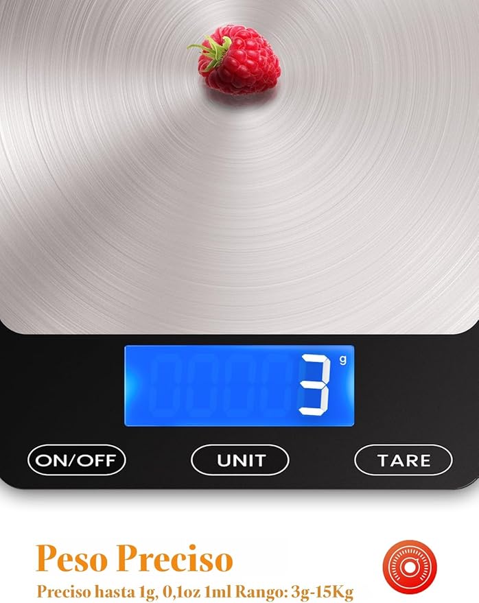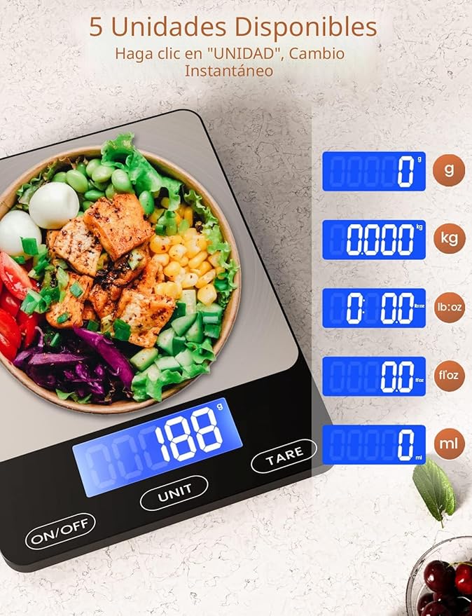 Q220.00 Báscula digital de cocina de 33 libras para alimentos, onzas de gramos. 【Escala de alimentos de peso precisa】Nuestra báscula de cocina de alimentos está equipada con cuatro sensores de carga de alta precisión, panel de pesaje de vidrio anticolisión impermeable. Gran capacidad de medición con graduación precisa de 0.1 onzas a 33 libras/33.1 lbs. Escala de cocina práctica y duradera: 5 unidades de medición de uso común (g/kg/lb:oz/oz/ml). La pantalla táctil y la pantalla LCD hacen que sea fácil de usar y leer. El panel de acero inoxidable de 7.9 x 5.7 x 0.6 pulgadas proporciona más estabilidad y espacio para contenedores más grandes. Escala de control de peso – Tara fácil: el botón de tara te permite restar el peso de la taza, plato o tazón de diferentes tamaños, por lo que es fácil lograr lecturas precisas de nueces, granos, polvo, frutas, leche y más alimentos. Báscula de horneado de diseño inteligente: con una función de apagado automático de 2 minutos, no hay necesidad de preocuparse por el consumo de energía. Alarma de bajo consumo y recordatorio de sobrecarga. Gancho para colgar y 4 gomas antideslizantes. Fácil de limpiar y almacenar. 【Soporte de 12 meses】Apreciamos a cada cliente, tu satisfacción es prioridad. No dude en ponerse en contacto con nosotros, tomaremos en serio cada consulta y pregunta. Enviamos a toda la republica pago contra entrega. Aceptamos tarjeta de crédito y debito.