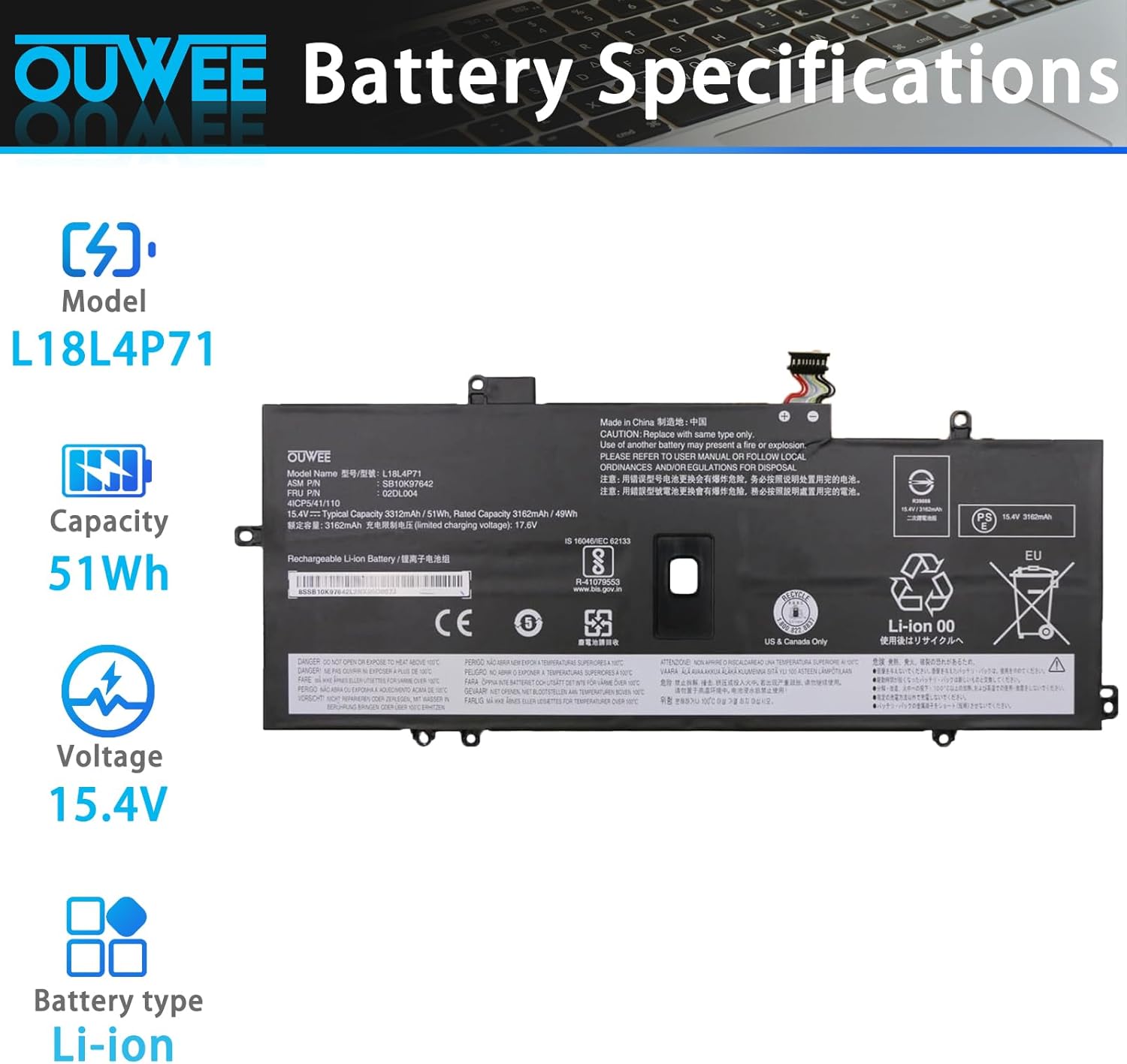 Q320 Batería para portátil compatible con Lenovo ThinkPad X1 Yoga 4a 5a generación/X1 Especificaciones: batería de repuesto para batería Lenovo thinkpad, tipo: iones de litio; nuestra batería L18L4P71 de repuesto para batería de iones de litio recargable estándar Lenovo tipo L18L4P71 Voltaje: 15.4 V; Capacidad: 51 Wh 3312 mAh; celdas: 4 celdas; color: negro; condición: nueva; dura la batería: 3-6 horas, los paquetes incluyen: 1x L18L4 Batería para portátil P71, 2 destornilladores gratis, 1 instrucciones (idioma español no garantizado) para la batería del portátil Totalmente compatible y de alta estabilidad: apto para batería de carbono Lenovo ThinkPad X1, apto para reemplazo de batería Lenovo Yoga, apto para Lenovo Thinkpad x1 yoga g1. Para 4ª generación / X1 Yoga 2019 Gen, ThinkPad X1 Yoga 5ª generación / X1 Yoga 2020 Gen, ThinkPad X1 Carbon 7ª generación / X1 Carbon 2020 Gen. 019 G , ThinkPad X1 Carbon 8ª generación / X1 Carbon 2020 Gen Series Notebook. 【Números de pieza de batería de repuesto】Batería para 02DL006 L18C4P71 SB10K97644 02DL004 L18L4P71 SB10K97642 02DL005 L18M4P72 SB10K97643. Enviamos a toda la republica pago contra entrega. Aceptamos tarjeta de crédito y debito.