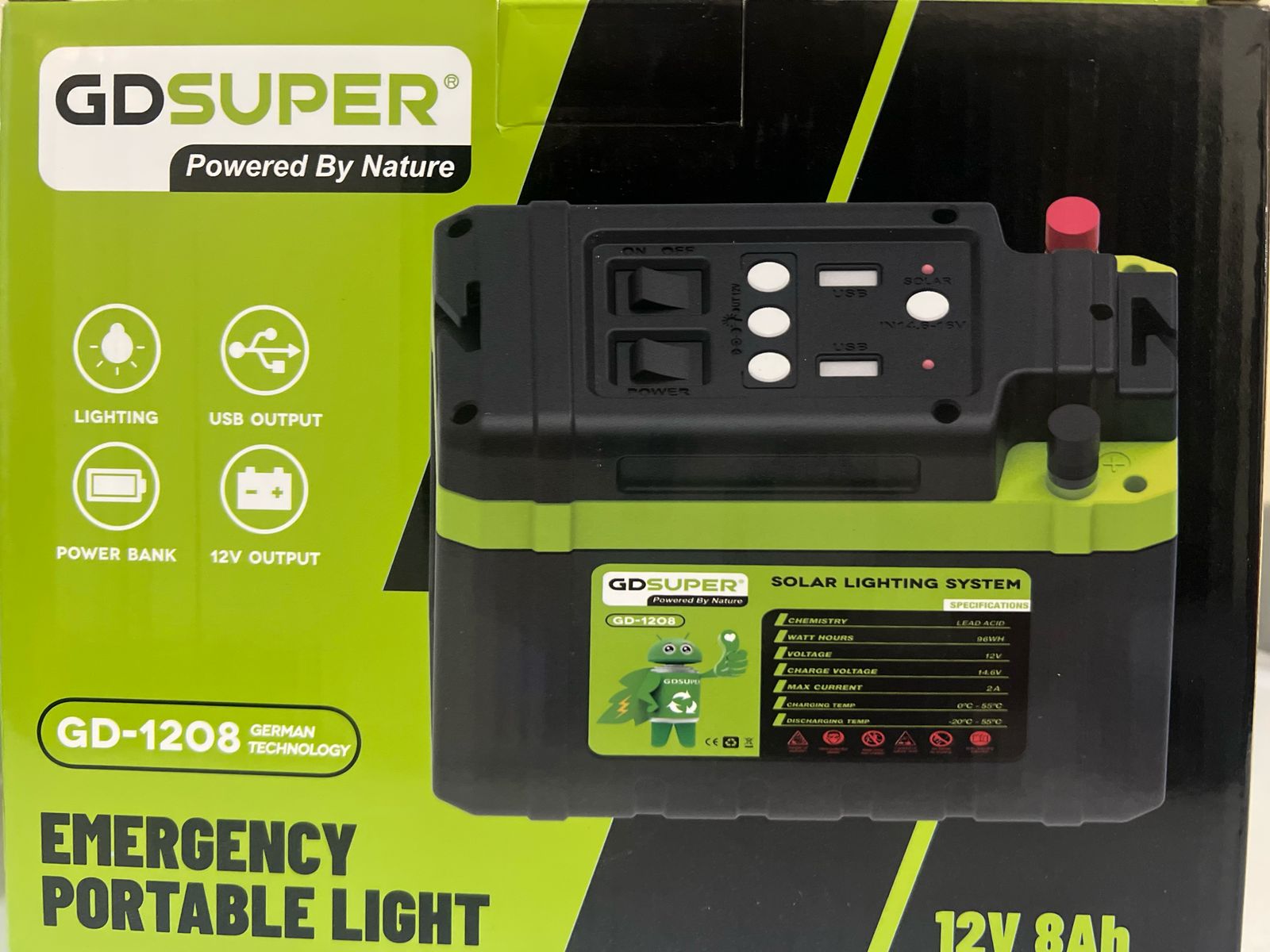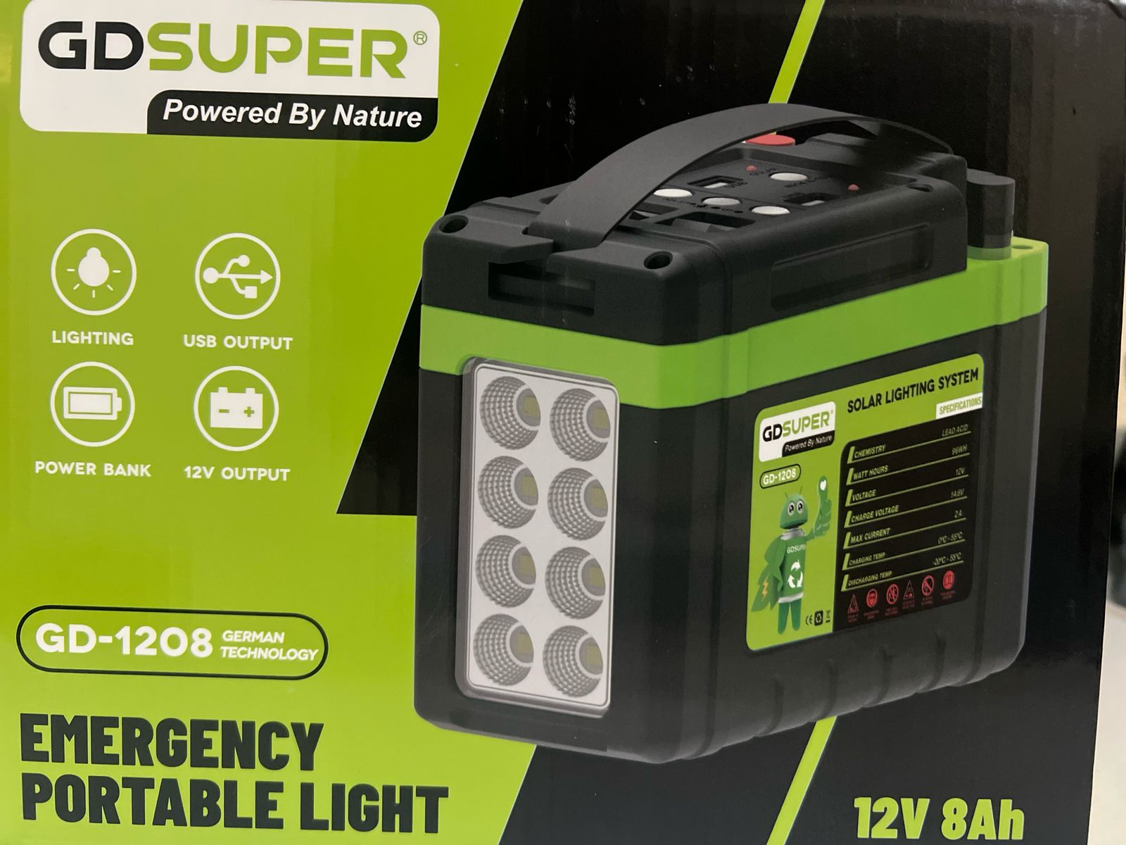 Q465.00 Bateria Qp 12v 8ah con luz de emergencia para cargarse con panel solar.