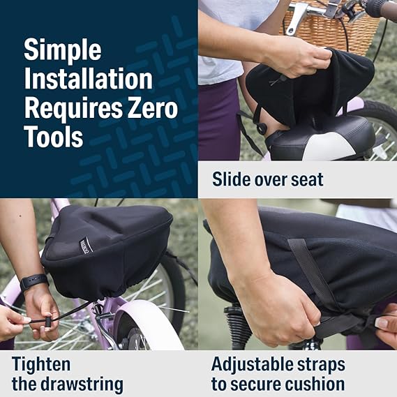 Q420.00 Bikeroo – Cojín de asiento de bicicleta, funda acolchada de gel para asiento de bicicleta. Ancho a medida: Nuestra funda acolchada para asiento de bicicleta de 11 x 7 pulgadas fue diseñada para un ajuste a medida sobre asientos de bicicleta estrechos, asientos de bicicleta para hombre y sillines universales para bicicleta. Es ajustable por su cordón de ajuste perfecto. Cómoda: ¿Andar en bicicleta se ha convertido literalmente en un dolor del trasero? La suave amortiguación de nuestro cojín de gel para bicicleta proporciona comodidad tanto a mujeres como a hombres. Versátil: Ideal tanto para uso en interiores como exteriores, utiliza nuestra funda de asiento de bicicleta de gel como un cojín de asiento de bicicleta de spin o para sillines activos de bicicleta de carretera y sendero. Como sea que montes, estas fundas de cojín para bicicleta están diseñadas para durar mucho tiempo. Agarre antideslizante Esta funda de asiento de bicicleta está hecha con una superficie interior antideslizante para evitar que se mueva mientras está en uso. ¿Te parece suficiente? También incluye un libro electrónico con consejos y trucos Calidad: Ofrecemos las mejores fundas de asiento de bicicleta de gel con materiales de la más alta calidad en el mercado. Enviamos a toda la republica pago contra entrega. Aceptamos tarjeta de crédito y debito.