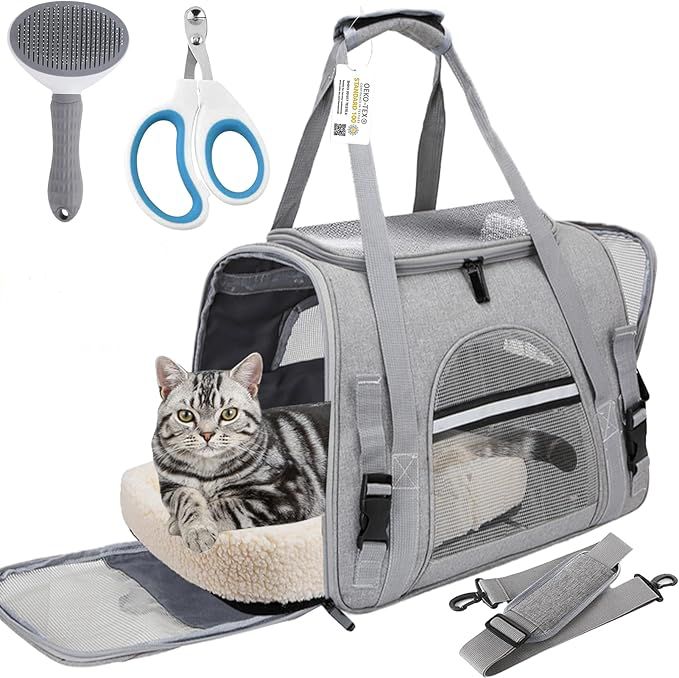 Q395 Bolsa de transporte para mascotas para gatos y perros de hasta 20 libras, transportador suave 【Dimensiones y valor del transportador para gatos】El transportador de mascotas para viajes es apto para mascotas pequeñas y medianas de hasta 20 libras, el tamaño del transportador para gatos es de 17.71″ de largo x 10″ de ancho x 11″ de alto. Recibirás un transportador para gatitos y una variedad de accesorios para gatos (alfombrilla, cortauñas, cepillo). 【Transportador para gatitos aprobado por aerolíneas】Con diseño aprobado por aerolíneas, puedes llevar a tu mascota querida a todas partes. Este transportador para mascotas proporciona dos asas de conexión para un transporte equilibrado como un cinturón de seguridad doble o correa de equipaje para asegurar el transporte. 【Ventanas de malla transpirable】Transportadores medianos plegables para gatitos con 5 ventanas laterales de malla para ventilación, sin estrés para los gatos. El ápice superior y las entradas de dos lados permiten sacar al gato. El transportador para gatos tiene asas de transporte y correas de hombro ajustables. Resistente y cómodo: la mochila para gatos está hecha de tela Oxford resistente y malla a prueba de arañazos. Además, el transportador de viaje para gatos viene con una suave alfombrilla de lana lavable para que tu mascota se acueste, que también tiene una base sólida para que sea estable. Enviamos a toda la republica pago contra entrega. Aceptamos tarjeta de crédito y debito.