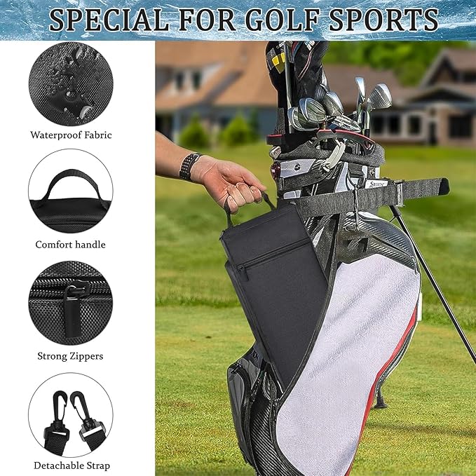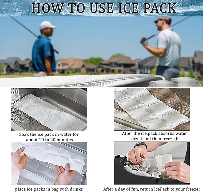 Mantiene las bebidas frías: esta hielera de golf tiene aislamiento de alta calidad y la bolsa de hielo mantiene las bebidas refrescantes durante 6-8 horas. Perfecto en un día caluroso. Remoja las bolsas de hielo en agua y congélalas antes de usar.