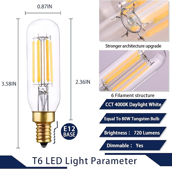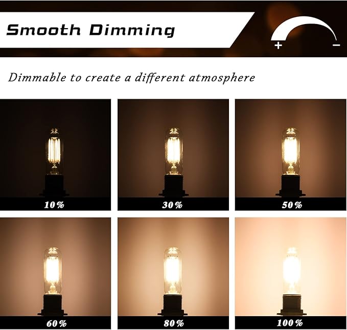 Q435.00 Bombilla LED T6 regulable E12 T25 Bombilla de vidrio transparente Edison para ventilador de techo. Regulable: estas bombillas LED de candelabro tienen un diseño de 6 filamentos, iluminando más brillante. La bombilla E12 es de atenuación suave del 0% al 100%, sin parpadeo ni luz estroboscópica, sin zumbidos ni zumbidos, siempre puedes ajustar el brillo perfecto para tu habitación. Diseño: arquitectura mejorada para una mayor robustez; 6 bombillas de filamento para una iluminación más amplia y brillante. Con un ángulo de haz de hasta 270 grados, 720 lúmenes e iluminación ultra alta de 90 CRI, estas bombillas regulables te proporcionan colores vibrantes y luz de calidad casi diurna. Ofrece un control de atenuación suave (0% -100%), siempre puedes ajustar el brillo perfecto para tu habitación. Calidad y seguridad: cada una de las bombillas de Create Bright está listada por UL (#E478785), y mantenemos todos nuestros productos con los más altos estándares, probando cada producto para un rendimiento y seguridad óptimos. Luz brillante sin zumbido ni parpadeo para una máxima comodidad ocular. Sin parpadeo ni estroboscópico: vidrio transparente de alta transmitancia, encendido instantáneo, sin rayos UV, potencia de alto grado y chipset, minimiza la contaminación lumínica como deslumbramiento y luz estroboscópica, protege tus ojos de la irritación. Aplicación: nuestras bombillas LED T6 son adecuadas para luces nocturnas, luces de Navidad, iluminación de patio al aire libre, iluminación decorativa, luces de pared, luces de cocina, luces colgantes. Enviamos a toda la republica pago contra entrega. Aceptamos tarjeta de crédito y debito.