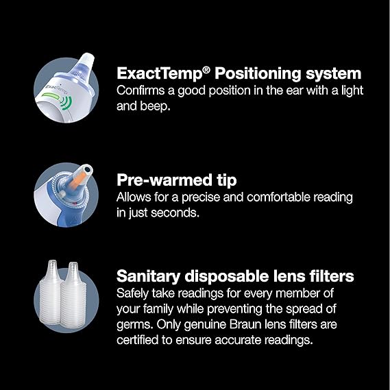 Resultados confiables: Para obtener la lectura más precisa de la temperatura corporal, el mejor sitio para medir la fiebre es el oído. Nuestro termómetro de oído para niños está diseñado con una punta precalentada (93°F), asegurando resultados precisos cada vez