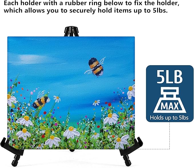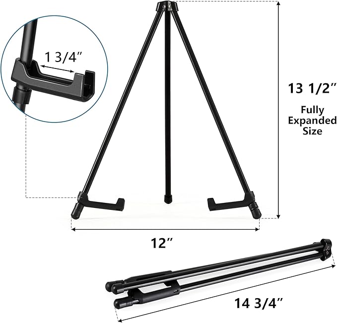 Q145.00 Caballete de exhibición instantánea de mesa de 14 pulgadas de alto, caballete de trípode pequeño. Soportes ajustables: Dos clips de plástico en las patas se pueden deslizar hacia arriba y hacia abajo para ajustar la altura. Cada soporte tiene un anillo de goma debajo para fijar el soporte, lo que te permite sostener de forma segura artículos de hasta 5 libras. Fácil de instalar: el pequeño caballete Somime se instala fácilmente en segundos sin necesidad de herramientas. Cuando está completamente expandido, los brazos de soporte se pueden bloquear en las posiciones deseadas, listos para usar. Amplias aplicaciones: el caballete Somime es un soporte de caballete de mesa ideal para mostrar múltiples pinturas y mesas de trabajo, adecuado para presentaciones, ferias comerciales y letreros de tiendas. También se puede utilizar para la pintura de escritorio. Trípode estable: el robusto caballete de trípode Somime está hecho de material de acero tubular ligero y tiene una superficie negra brillante. Tres patas de goma antideslizantes garantizan suficiente estabilidad y protección de la superficie del escritorio. Diseño compacto: el caballete de mesa Somime se pliega hasta un tamaño compacto de 14.75 pulgadas y pesa menos de 1 libra, ocupando un espacio mínimo. También viene con un cilindro de plástico para almacenar el soporte de caballete, conveniente para llevar a todas partes. Enviamos a toda la republica pago contra entrega. Aceptamos tarjeta de crédito y debito.