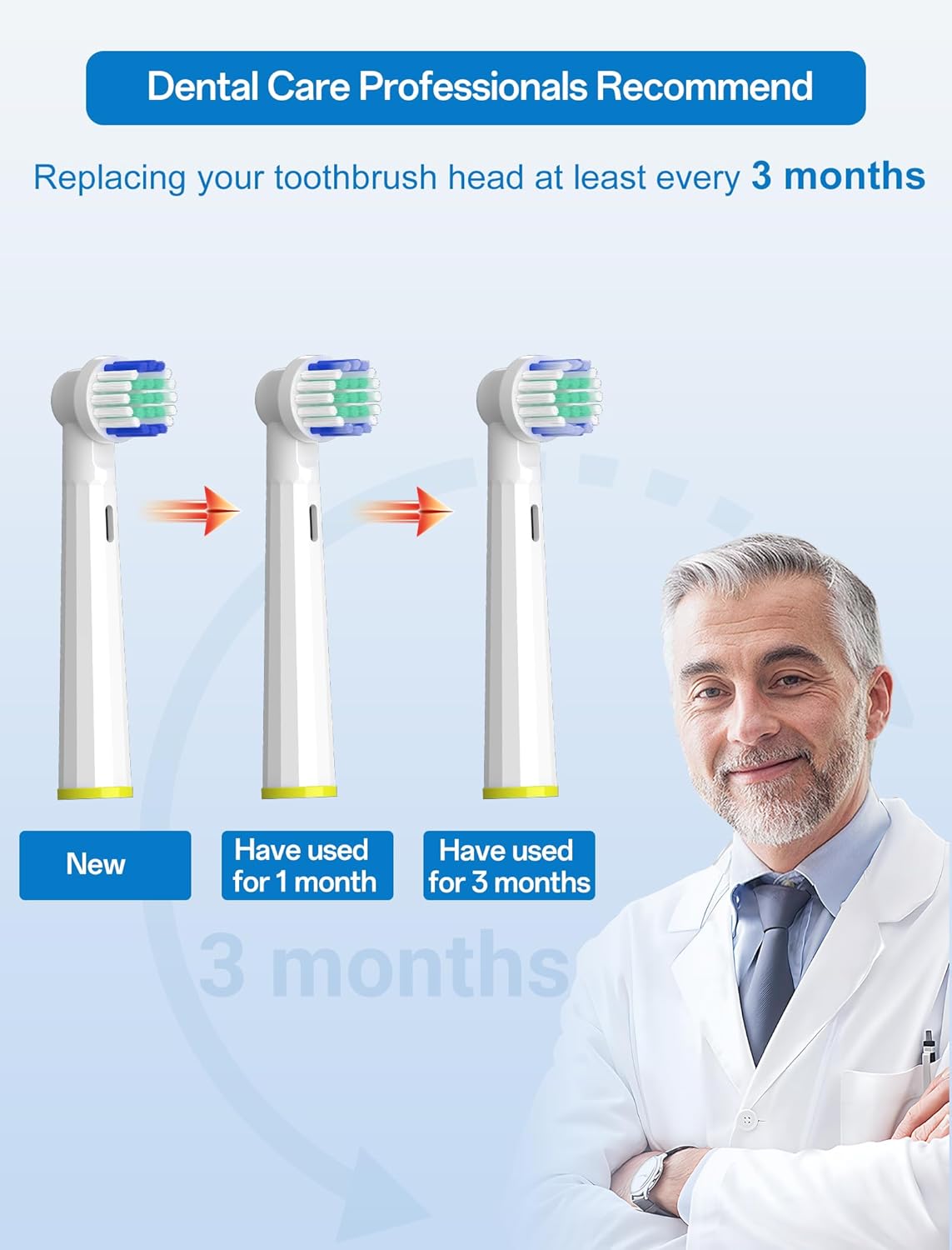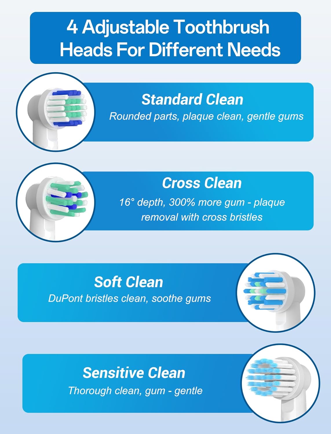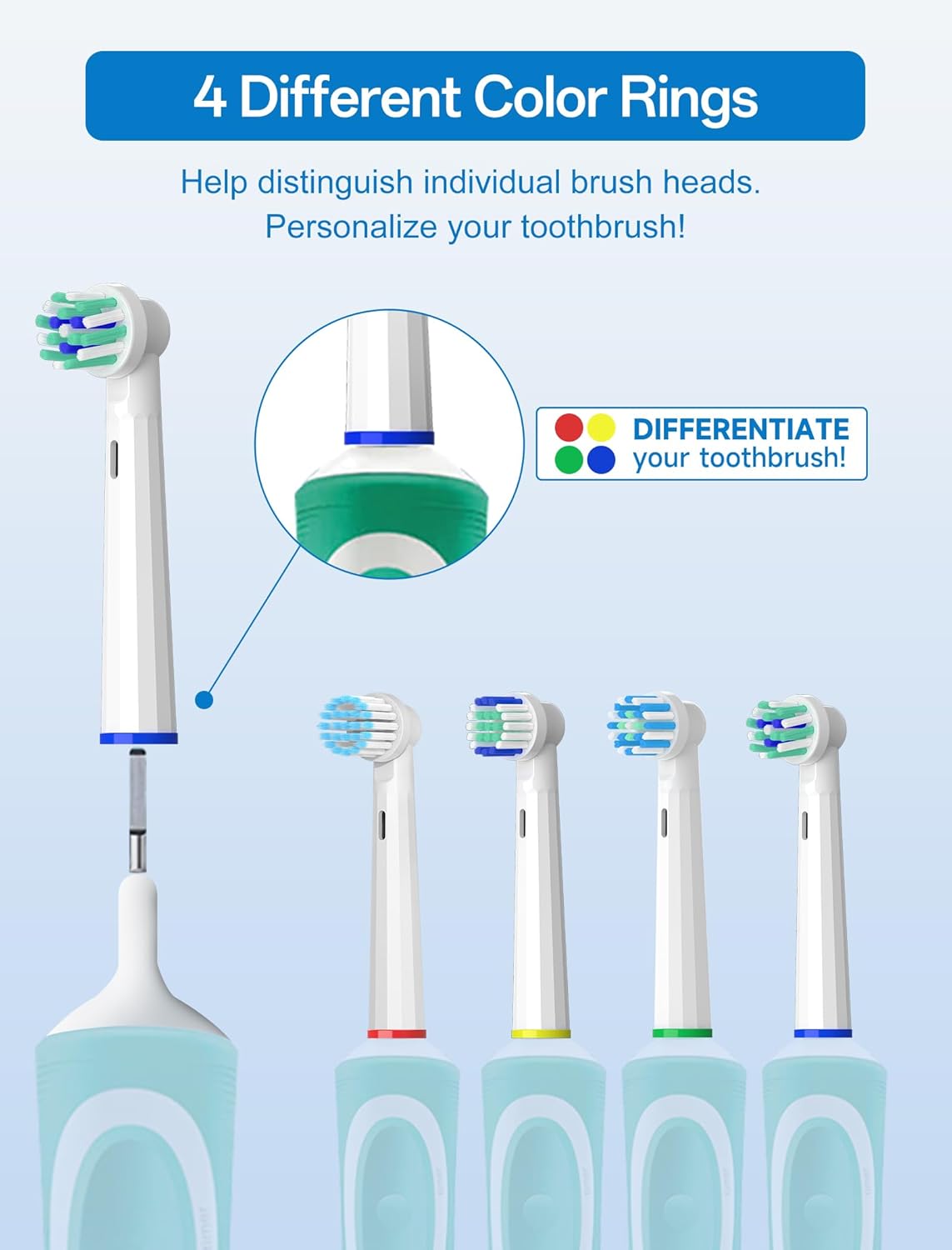 Q225.00 Cabezales de repuesto compatibles con cepillo de dientes Oral B, 8 paquetes de cabezales. Amplia compatibilidad con la serie Oral-B: Diseñado para adaptarse a una amplia gama de modelos de cepillos de dientes eléctricos Oral-B, excepto para la serie Pulsonic y para iO. Asegúrese de una actualización perfecta a su rutina de cepillado actual y no es necesario cambiar su mango de cepillo de dientes existente. Paquete de 8 unidades para compartir en familia: incluye 8 cabezales de cepillo con anillos de colores para una fácil identificación. Para garantizar una limpieza eficaz, reemplace los cabezales de los cepillos cada 3 meses o cuando disminuya el efecto de limpieza de los cabezales del cepillo Cepillo de repuesto flocado de alta densidad: Las cerdas densamente empaquetadas se flexionan para abrazar las curvas de los dientes, alcanzando puntos difíciles mientras son suaves con las encías. Potente función de limpieza puede eliminar hasta 5 veces más placa dental a lo largo de la línea de las encías. Diseño de punta redonda: la punta redonda del cabezal del cepillo es suave para las encías y evita cualquier daño. 2 juegos de 4 tipos de cabezales de cepillo: Cruz suave sensible y cabezales de repuesto estándar, 4 tipos diferentes de cabezales de cepillo con varias funciones satisfacen diferentes necesidades orales. Cabezal de cepillo de dientes multifuncional: adecuado para una variedad de diferentes problemas orales, diseño versátil que aborda la placa, el cuidado de las encías y la limpieza diaria para la mayoría de las necesidades orales. Enviamos a toda la republica pago contra entrega. Aceptamos tarjeta de crédito y debito.