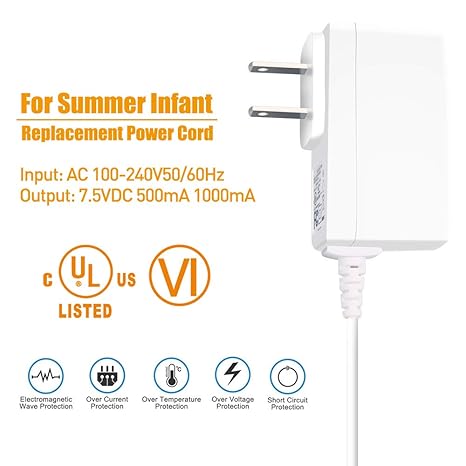 Q195.00 Cable de alimentación de 7.5 V con certificación UL para la mayoría de los modelos infantiles de verano ✔Compatibilidad: este producto es compatible con los siguientes dispositivos: Summer Infant 02230 28040 28450/2845013/28450-13 28456 28460 28490/28490A 28510 28513 28520 285 8530 28560 28570 28580 28590 28600 28630/28630A 28640 28650/28650A 28680/28680Z 28810/28810A 28820 28870 2892 0 28970/28970A 28980 29000A/29000B 29030 29040 29240/F29240 29253 29260 29270 29310 29350 29580/29929 580-1 3 29590 29600 29610 29620 29630 29650 29710 29740 29790 29890 36014 36034 36044 3927003H12 ✔Compatibilidad (continuación) – Números de pieza: P507050500 AD0507050500 AD-050750500 ADN050750500. Consulte la descripción para ver la lista completa de modelos compatibles. ❌❌❌Modelos que no se ajustan: Summer Infant 2800, 02800, 02804, 02805 AD150600550 02000Z 02000 AD050600550 AD05060055 AD050600550 ✔ Seguridad/UL listado: probado, aprobado y certificado por UL, la seguridad de tu equipo, negocio, hogar y familia depende de la calidad de tus productos electrónicos ✔ ¿Cómo saber si se ajusta a tu dispositivo? – Asegúrese de que el puerto de entrada de su dispositivo Summer Infant sea un puerto REDONDO. El voltaje de entrada es de 7.5V mientras que la corriente de entrada es o inferior a 1000mA. Esto no es compatible con dispositivos que entran voltaje NO 7.5V o corriente de entrada superior a 1000mA. ✔ Diseño de cable largo extendido: hasta 6.6 pies. en longitud. Permite configurar su monitor y cámara fácilmente. No más límites con el cable corto. Enviamos a toda la republica pago contra entrega. Aceptamos tarjeta de crédito y debito.