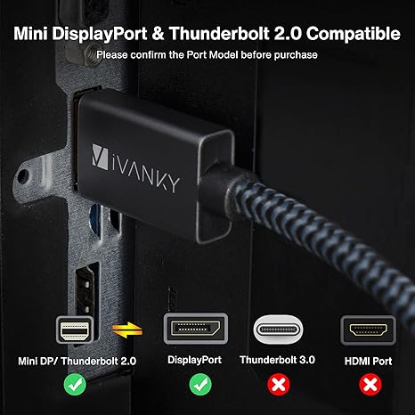 Q185.00 Cable mini DisplayPort a DisplayPort. 【Ver contenido 8K en una pantalla más grande】Este cable bidireccional Mini DisplayPort a DisplayPort / DisplayPort a Mini DisplayPort (no HDMI) te permite conectar portátiles con puertos Mini DP/DP a pantallas externas/televisores/proyectores con una entrada DisplayPort/Mini DisplayPort, lo que permite una hermosa pantalla 8K ya sea que estés planeando jugar videojuegos o ver juegos deportivos en una pantalla más grande con una alta frecuencia de actualización Alta frecuencia de actualización compatible: el cable Mini DP a DP ofrece una tasa de actualización amigable para jugadores con soporte para (4K a 144 Hz, 2K a 240 Hz) y ofrece alta resolución de hasta 8K (7680 x 4320 @60 Hz), por lo que es una opción óptima para una experiencia de juego más suave y fluida Diseño cuidadoso: el diseño sin pestillo te ayuda a enchufarlo y desenchufarlo fácilmente sin dañar el puerto. El elegante perfil de shell alivia las preocupaciones sobre la obstrucción de puertos adyacentes. La chaqueta trenzada de nailon soporta más de 15.000 curvas y no se rompe fácilmente. El blindaje múltiple y los conectores chapados en oro de 24K proporcionan una transmisión de datos confiable y sin interferencias, mejorando la estabilidad de la transmisión Transmisión bidireccional y soporte MST: maximiza tus capacidades de pantalla con el cable iVANKY DisplayPort a Mini DisplayPort 1.4, que ofrece transmisión bidireccional de Mini DP a DP y DP a Mini DP. El soporte MST permite configuraciones de varios monitores, perfectas para el trabajo o el entretenimiento. Nota: Asegúrese de la compatibilidad del dispositivo con MST para un uso óptimo Experiencia de juego mejorada: el cable Mini DP a DP de 8K cuenta con un ancho de banda más alto de hasta 32.4 Gbps (HBR 3), garantiza que tu tarjeta gráfica y monitor funcionen en perfecta armonía, ofreciendo imágenes nítidas y movimientos enemigos suaves. Además, es compatible con Dynamic HDR y HDCP 2.2, DSC 1.2, 3D, Nvidia G-Sync y AMD FreeSync para obtener imágenes excepcionales y reacciones ultrarrápidas dentro del ámbito de los juegos 【Buena compatibilidad】 Ideal para Mini DP o Thunderbolt 2.0: Apple MacBook Air (antes de 2018), Apple MacBook Pro (antes de 2016), iMac (antes de 2017), línea Microsoft Surface Pro, Surface Laptop y cualquier otra computadora portátil con salida Mini DisplayPort o Thunderbolt 2.0, así como otros equipos de escritorio/portátiles equipados con DisplayPort (no HDMI) Confirma el tipo de conector: ten en cuenta que este es un cable de 8K Mini DisplayPort (Mini DP) a DisplayPort (DP). Verifique dos veces los puertos de su dispositivo (Mini DP o DP) para garantizar la compatibilidad antes de realizar el pedido. Enviamos a toda la republica pago contra entrega. Aceptamos tarjeta de crédito y debito.