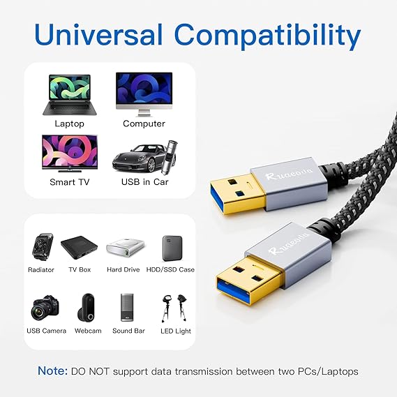 Q130.00 Cable USB a USB de 3 pies, USB 3.0 macho a macho tipo A a A, cable USB de doble cara. SuperSpeed de hasta 5 Gbps para transferencia de datos USB 3.0, 10 veces más rápido que USB 2.0. Compatible con puertos USB 2.0 y USB 1.1 de ordenador, estos cables también permiten la conexión de dispositivos USB 3.0 a computadoras USB 2.0 heredadas. El cable USB macho a macho conecta un periférico USB con un puerto USB 3.0 tipo A a una computadora para una rápida transferencia de archivos. Es compatible con PC de escritorio con Windows, disco duro externo, almohadilla de enfriamiento para laptop, reproductor de DVD, concentrador USB 3.0, cámara, Wacom, decodificador, unidad Blue-ray, altavoz Bluetooth para automóvil, carcasa de disco duro externo de 2.5 pulgadas con puerto USB 3.0 tipo A y la mayoría de puertos USB 3.0. Calidad impresionante: con un escudo trenzado y conector de aleación de aluminio, el cable Ruaeoda macho a macho es extremadamente duradero y resistente; también está construido con múltiples capas de blindaje para minimizar las interferencias y resistente a la corrosión para una claridad de señal óptima, prolongando eficazmente la vida útil del cable. No se necesita controlador para el USB 3.0 a a un cable. Simplemente conecta y usa para carcasas de disco duro, impresoras, módems, cámaras y otros periféricos USB SuperSpeed. Lleva señales de datos USB 3.0 y alimentación, dispositivos que necesitan de un macho a macho para funcionar (no admite conectar dos computadoras directamente). Enviamos a toda la republica pago contra entrega. Aceptamos tarjeta de crédito y debito.