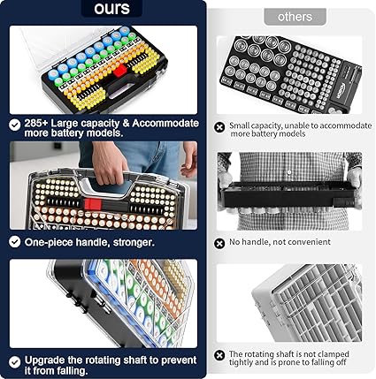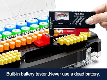 Q195 Caja organizadora de batería con soporte y probador, caja de almacenamiento ultra grande de 285+ 1. Nueva actualización 2025 Caja de batería de gran capacidad: soporte de batería RESGKZE especialmente diseñado para almacenamiento de baterías, caja de batería Almacena hasta 285+diferentes tipos de paquetes de baterías y probador de batería BT188 de nuevo estilo, puede ayudarlo a probar rápidamente la vida útil de la batería y clasificarla, ahorrar espacio de almacenamiento, satisface sus necesidades diarias. En comparación con la mayoría de las cajas de almacenamiento de baterías en el mercado, tiene una mayor capacidad, un aspecto más hermoso, es compacto y más duradero. 2. Exquisitos contenedores de almacenamiento de batería: Nuestra caja de batería portátil adopta un diseño general en forma de arco, que es único y hermoso. La placa de cubierta está diseñada con múltiples líneas diagonales, lo que la hace más resistente a la presión y caídas. El mango utiliza un diseño de barra multivertical, proporcionando una sensación antideslizante y de agarre más espaciosa. Los puntos de conexión de las placas de cubierta de doble cara se sujetan en direcciones opuestas, por lo que es más seguro y fácil de desmontar. Este es el último modelo de 2025 con un diseño único. Es más estéticamente agradable y práctico que las cajas de almacenamiento de baterías en el mercado. 3. Organizador de baterías único de doble cara RESGKZE: El lado frontal del estuche de almacenamiento de baterías RESGKZE tiene una cara A: 56 * AAA, 38 * AA, 9 * D, 11 * C, 11 * 9 Volt, 50+ * Pila de botón, Coloque 1 * probador de baterías. El lado posterior tiene una cara B: 12 * AA, 16 * AAA, 14 * AAAA 4A, 7 * 23A, 16 * CLR44, 6 * CR3, 3 * CR123A, 6 * 18650, 40+ * Pila de botón. Cada agujero está marcado con el nombre del modelo de la batería, lo que hace que sea más conveniente clasificar las baterías. La parte delantera es de almacenamiento vertical, la parte posterior es de almacenamiento horizontal, adecuada para cualquier paquete de baterías, no te preocupes por que la tapa no se pueda cerrar correctamente después del llenado. Enviamos a toda la republica pago contra entrega. Aceptamos tarjeta de crédito y debito.
