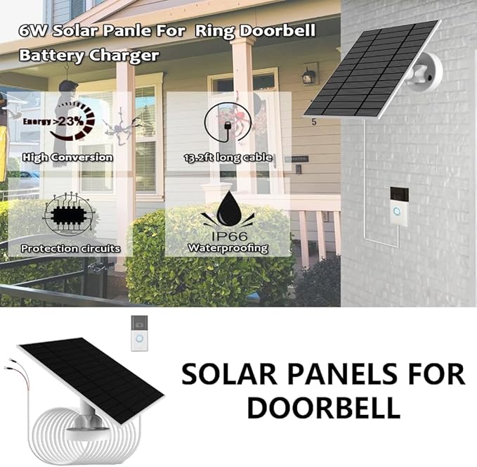 Q345 Cargador de batería para timbre con video, panel solar de 6 W para exteriores, IP66 Mejora la seguridad de tu hogar con nuestro panel solar de 6 W, exclusivo para videoportero, garantizando que tus dispositivos se mantengan cargándose con energía solar. Con una construcción a prueba de agua IP66 y un circuito de protección inteligente, este panel solar ofrece seguridad de múltiples capas contra sobrecarga, descarga excesiva y condiciones climáticas extremas. Adecuado para propietarios que buscan una solución de energía que no requiera mantenimiento para sus cámaras de timbre, mejorando la comodidad de la vigilancia de la propiedad. Integre sin esfuerzo este cargador solar en cualquier entorno exterior, desde la puerta de entrada residencial hasta ubicaciones remotas que no necesitan tomas de corriente accesibles, manteniendo sus sistemas de seguridad alimentados las 24 horas del día. Fabricado con silicio monocristalino de alta eficiencia, este panel solar es resistente al desgaste y sustentable para alimentar su timbre con video, lo que garantiza protección ininterrumpida. Enviamos a toda la republica pago contra entrega. Aceptamos tarjeta de crédito y debito.