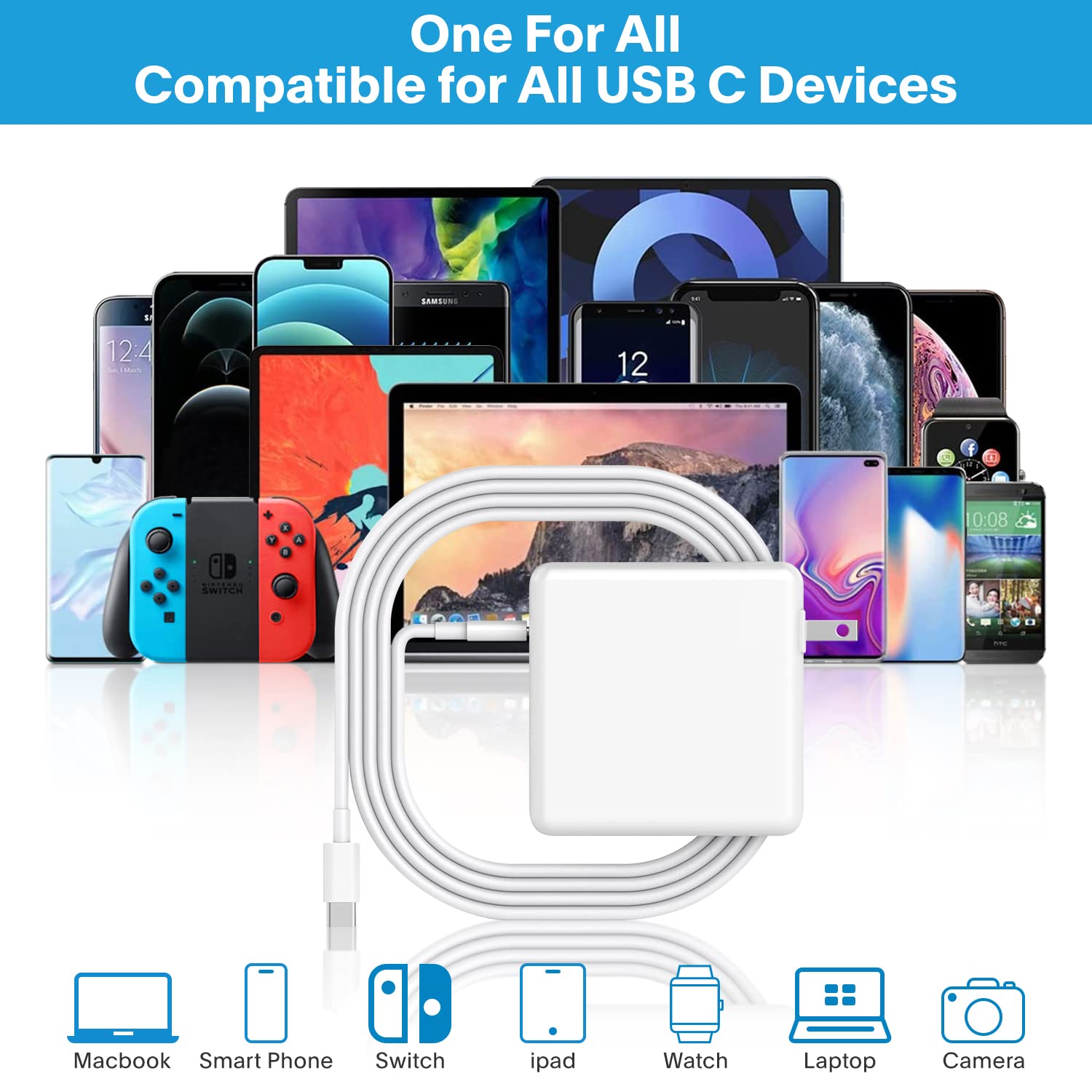 Seguro y confiable: nuestro cargador USB C para MacBook está diseñado pensando en la seguridad y la fiabilidad. Está equipado con características de seguridad avanzadas, incluyendo protección contra sobretensión, protección contra sobrecorriente, protección de temperatura, recuperación automática y protección contra cortocircuitos. Compatible con modelos PD de 29W, 30W, 61W, 67W, 70W, 87W, 96W PD