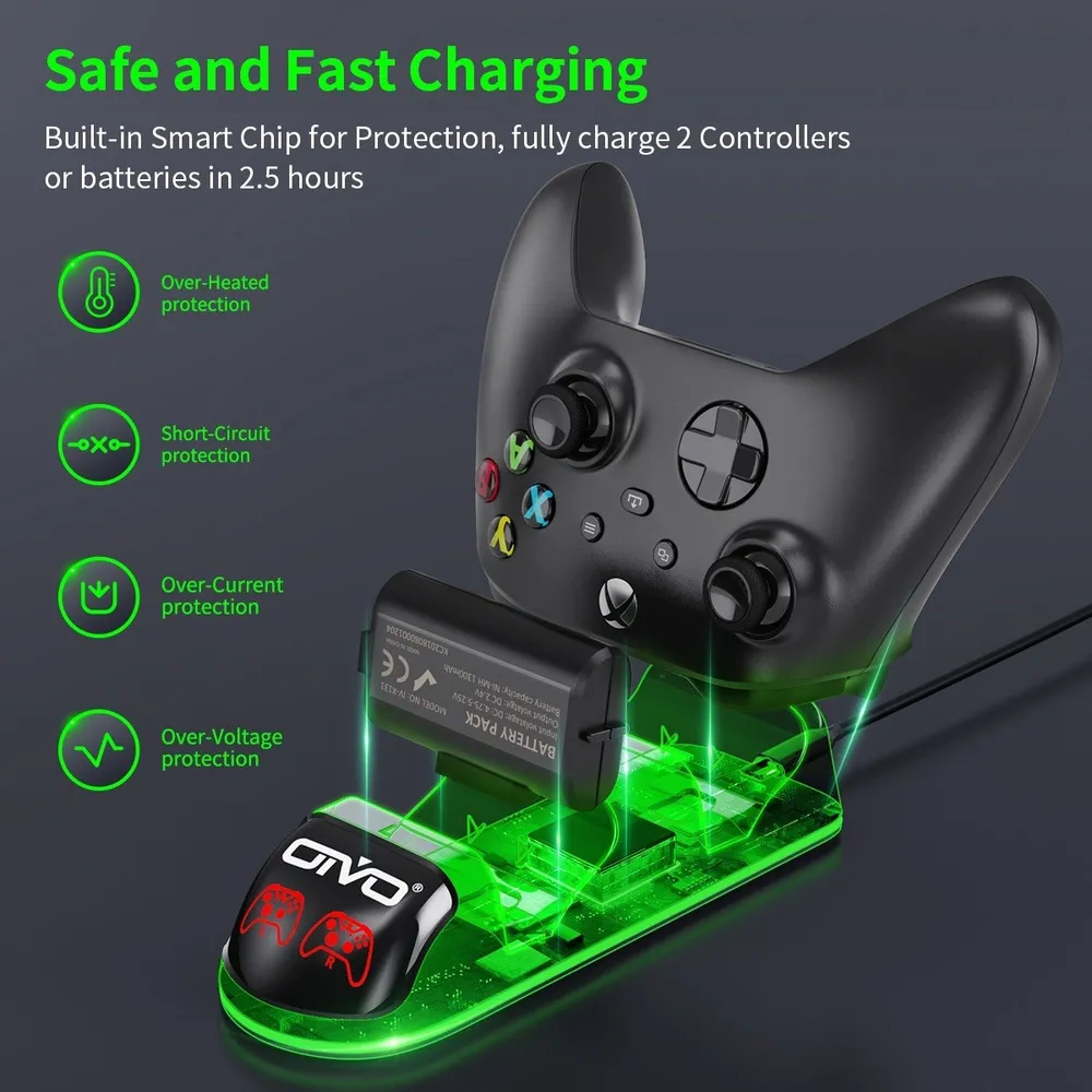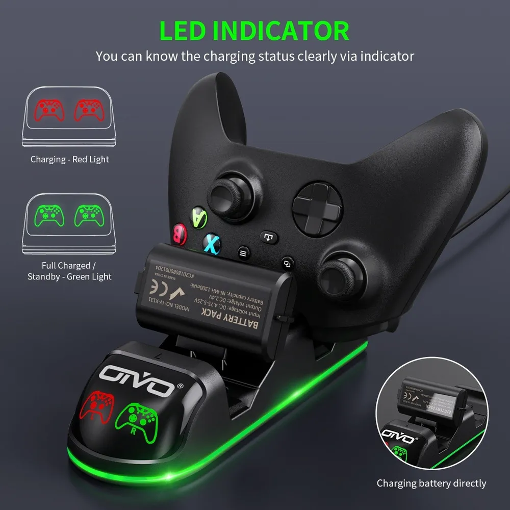 Q295.00 Cargador Oivo Con 2 Baterías Para Mando Xbox One /series (una bateria). Especialmente diseñado para el mando Xbox Series y One y Elite. 2. Paquetes de baterías de gran capacidad, carga cíclica más de 3000 veces 3. Seguro y fácil de usar: chip protector inteligente incorporado, evita la sobrecorriente, el sobrecalentamiento, la sobretensión y los cortocircuitos. Inserta ligeramente la batería en el mando, cierra la tapa de la batería (si eliges Xbox One/Series) de los mandos y, a continuación, colócalos en la base de carga. 4. Indicadores LED y correa LED: cuando el LED de carga indica el color ROJO, cuando la carga está finalizada o en espera, se pone de color VERDE. Enviamos a toda la republica pago contra entrega. Aceptamos tarjeta de crédito y debito.