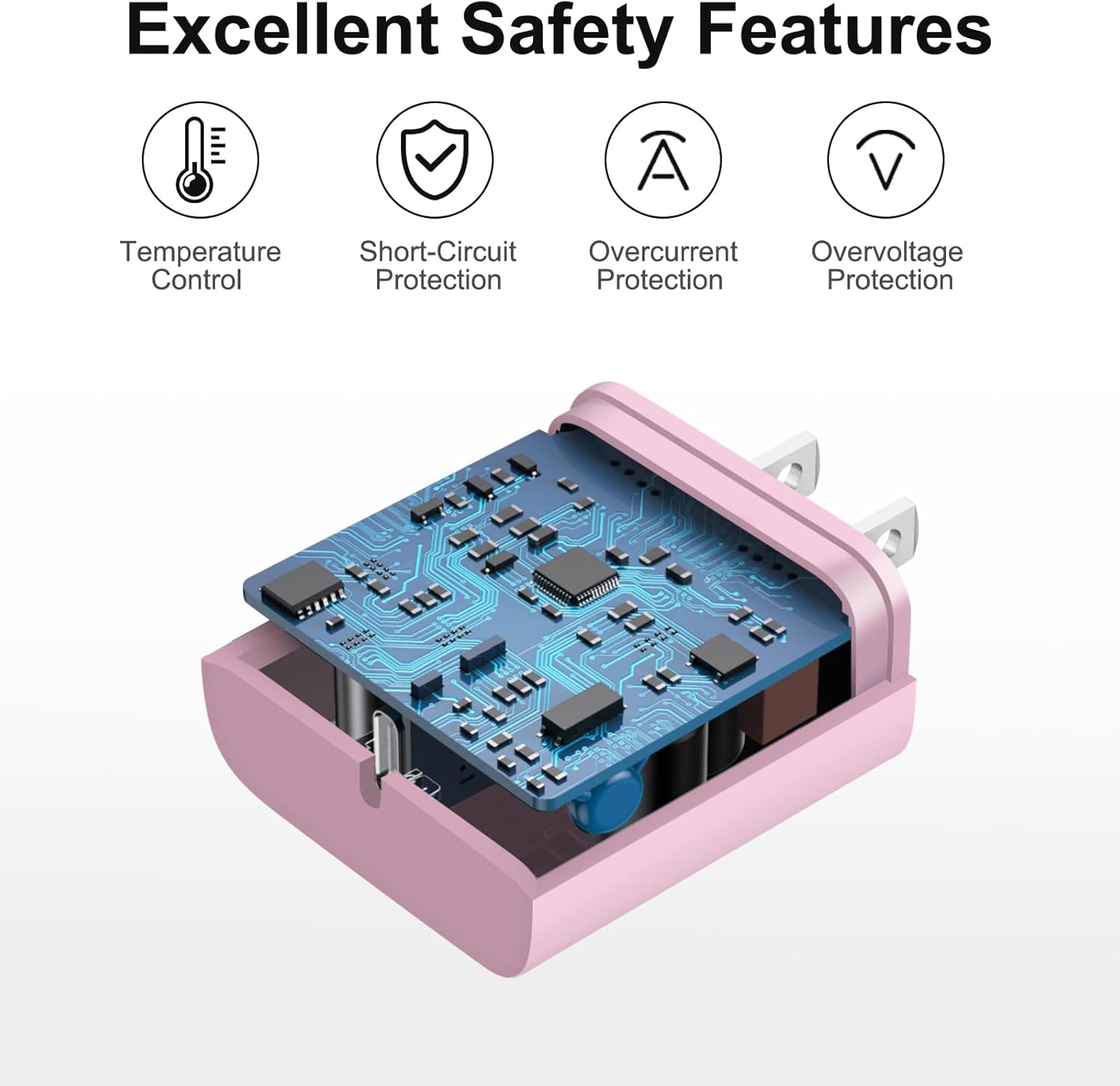 Seguridad superior: bloque de carga rápida para iPhone equipado con una amplia gama de características de seguridad, incluyendo control de temperatura, protección contra cortocircuitos y regulación de corriente para proteger tus dispositivos conectados y maximizar la vida útil de tu dispositivo