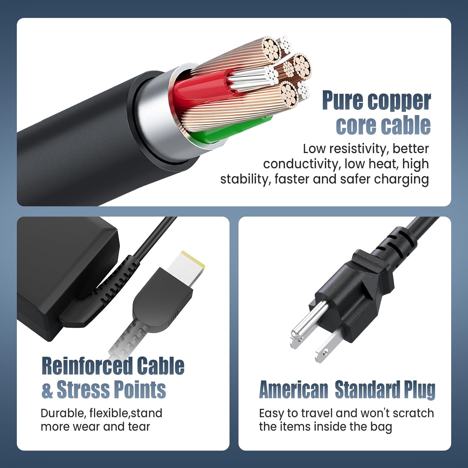 Q225.00 Cargador para laptop de 65 W, compatible con Lenovo ThinkPad. Alta compatibilidad con portátiles Lenovo: el cargador para laptop VUOHOEG de 65 W es compatible con una amplia gama de modelos Lenovo, incluyendo ThinkPad T440, T450, T460, T470, X240, X250, X260, X270, L440, L450, L540, E440, E450, E550. 0, E56 0, W550s, Yoga 260, S431 y más. Comprueba tu adaptador original o modelo de dispositivo antes de comprar. Rendimiento de potencia confiable: 65 W. Entrada: 100-240 V ~ 1.5 A, 50/60 Hz; Salida: 20 V 3.25 A, 65 W. Diseñado para ofrecer una salida de potencia constante y garantizar una velocidad de carga óptima y seguridad para su dispositivo. Incluye conector de punta cuadrada amarilla de alta calidad para una conexión estable y segura. Diseño seguro y duradero: construido con materiales de primera calidad y múltiples sistemas de protección, incluyendo sobretensión, sobrecorriente, sobrecalentamiento y protección contra cortocircuitos. Los cargadores VUOHOEG están probados para cumplir con estrictos estándares de control de calidad, asegurando seguridad y longevidad. Contenido del paquete: 1 adaptador de CA VUOHOEG de 65 W y 1 cable de alimentación. Compatible con números de pieza como ADLX65NCC2A, ADLX45NDC3A y 0B47481. Enviamos a toda la republica pago contra entrega. Aceptamos tarjeta de crédito y debito.