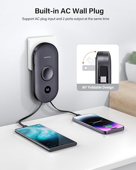 Q445.00 Cargador portátil para Samsung Watch 8/7/6/5, batería externa de 10000 mAh con cables integrados. Cables integrados y enchufe de pared: el SwanScout 302S cuenta con cables integrados para todos los tipos de teléfonos y un práctico enchufe de pared de CA. Además, incluye un puerto USB-C para carga y recarga rápidas (Nota: la salida USB-C adicional no es compatible con la serie iPhone 15). El enchufe de pared de CA integrado permite la carga directa desde un tomacorriente de pared, eliminando la necesidad de cables adicionales mientras viajas Acabado texturizado de alta calidad: la superficie adopta una técnica de procesamiento texturizada, mejorando la textura de la superficie del producto, mejorando su sensación y rendimiento antideslizante. Las dimensiones del producto son 6.49 x 2.94 pulgadas (similar en tamaño al S24 Ultra), con un peso de 12.35 oz Diseñado para Samsung Watch: diseñado específicamente para Samsung Galaxy Watch 8/8 Classic/7/Ultra/FE/6/6 Classic/5/5 Pro/4/4 Classic/3/Active 2/Active (Nota: no compatible con Galaxy Watch (1.654 pulgadas/1.811 pulgadas)/Gear S2/Gear S2 Classic/Gear S3/Gear Sport, no para Apple Watch Batería de gran capacidad de 10000 mAh: con una robusta capacidad de batería de 10,000 mAh, este cargador portátil puede recargar para Samsung Watch más de 10 veces, proporcionar 1.8 cargas para el iPhone 14 y 1.2 cargas para Samsung S24, asegurando que tus dispositivos estén siempre encendidos Dos formas de recargar el banco de energía – Hay dos formas convenientes de recargar el banco de energía. En primer lugar, cárguelo directamente a través del enchufe de pared de CA integrado, logrando una carga completa en solo 4,5 horas. Alternativamente, utiliza el cable de carga rápida USB-C para recargar el banco de energía, con una carga completa completada en 3.5 horas Lo que obtienes: 1 SwanScout 302S, 1 manual de usuario (idioma español no garantizado). Si tienes algún problema, no dudes en ponerte en contacto con nosotros. Nuestro amable equipo de servicio al cliente se dedica a garantizar tu satisfacción. Enviamos a toda la republica pago contra entrega. Aceptamos tarjetas de credito y debito.