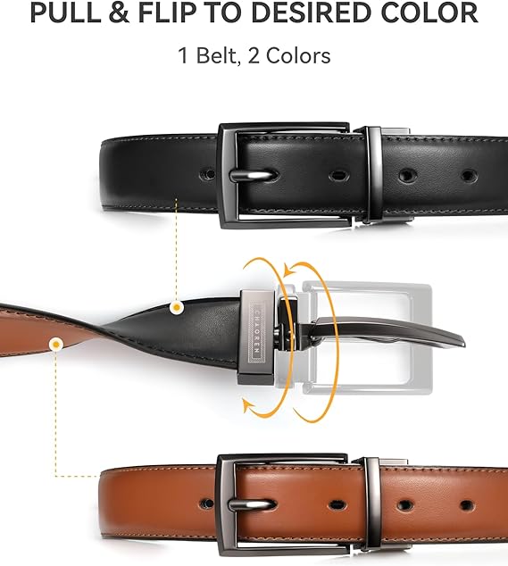 Q375.00 CHAOREN Cinturones de cuero para hombre, 1 paquete. Sofisticación de 1 unidad: el cinturón de cuero reversible CHAOREN para hombre cuenta con dos colores clásicos en un cinturón. Voltea los lados sin esfuerzo para un aspecto fresco: un cinturón, dos estilos. Perfecto para pantalones de vestir, atuendos casuales. Eleva tu estilo: destaca con un cinturón de vestir único para colorear frotado a mano. Combina perfectamente con zapatos de vestir para hombre como Brogue y Oxfords. Un solo detalle puede transformar todo tu look. Ya sea una entrevista de trabajo o una boda, nuestro cinturón negro y marrón te garantiza un aspecto pulido e impecable. Cuero de alta calidad mejorado: hecho de cuero genuino con tecnología avanzada antigrietas, no se rompe como el cuero sintético. Reforzado con 21 capas de coloración de borde para mayor durabilidad, está diseñado para soportar el uso diario sin pelarse ni deshilacharse. Ajuste a medida, ajuste fácil: nuestro diseño ajustable inteligente le permite cortar a medida sin necesidad de herramientas especiales. Disfruta de un ajuste personalizado en minutos. Un cinturón reversible versátil que se adapta a hombres de todas las edades con facilidad y precisión. Compra sin preocupaciones: el paquete incluye un cinturón reversible y una guía paso a paso. Es un regalo refinado para cualquier caballero. Y si surgen problemas de calidad, nuestro equipo está aquí para hacerlo bien, sin estrés, sin problemas. Enviamos a toda la republica pago contra entrega. Aceptamos tarjeta de crédito y debito.