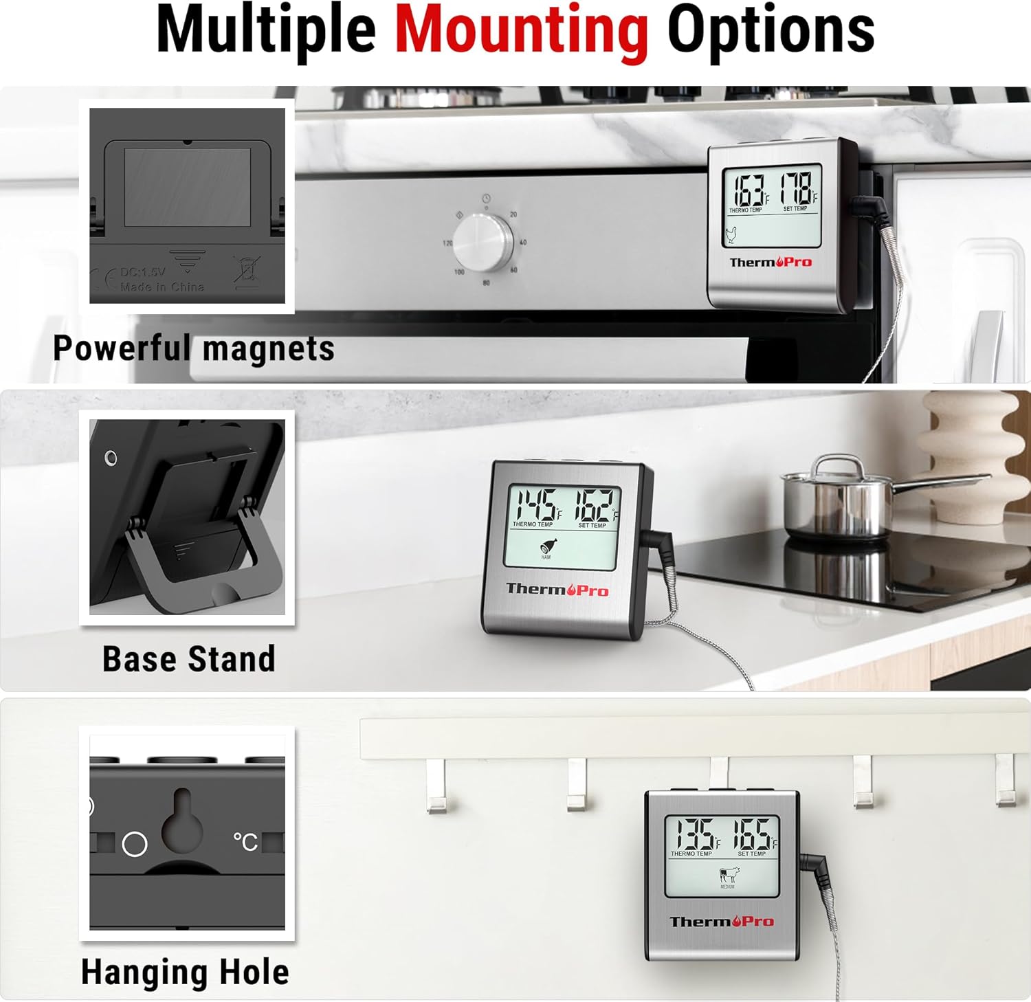 Modo cocina: ThermoPro barbacoa termómetro ideal para la parte superior del horno, fuego o estufa. Programable alerta con temperaturas configuradas previamente para determinados alimentos recomendado por el USDA. También puedes ajustar la temperatura manualmente