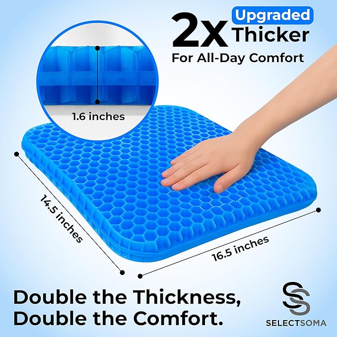Q295 Cojín de gel morado para sentarse con funda antideslizante, cojín de apoyo para espalda Necesitas algo ligero y portátil: Utiliza nuestro cojín de gel para silla de oficina, sillas de comedor, mientras conduces, viajes en avión, asientos de estadio, picnics, o incluso sentado en el suelo. Nuestro cojín de asiento doble morado es ligero y flexible, lo que hace que sea fácil de usar en cualquier lugar. Obtén el alivio del dolor que mereces: Nuestro cojín de gel es perfecto para ayudar con la parte baja de la espalda, el nervio ciático, el coxis, el trasero y el dolor de cadera. Nuestro cojín para de huevo tiene un diseño ergonómico para ayudar a evitar el entumecimiento en los músculos de las nalgas y la tensión lumbar. Disfruta de la frescura: nuestro cojín de asiento morado tiene un diseño de gel de panal grueso terapéutico para aumentar el flujo de aire para una máxima comodidad de refrigeración para evitar el sudor del asiento y una cubierta de malla ventilada que no se calienta, a diferencia de los modelos de espuma viscoelástica. Gel resistente al agua y funda lavable: Nuestra almohadilla de asiento de gel también se puede utilizar mientras te bañas, nadas, canotaje, kayak, arrodillas mientras haces jardinería o en sillas de patio al aire libre. Nuestro cojín de gel incluso tiene una segunda funda lavable a máquina. Enviamos a toda la republica pago contra entrega. Aceptamos tarjeta de crédito y debito.