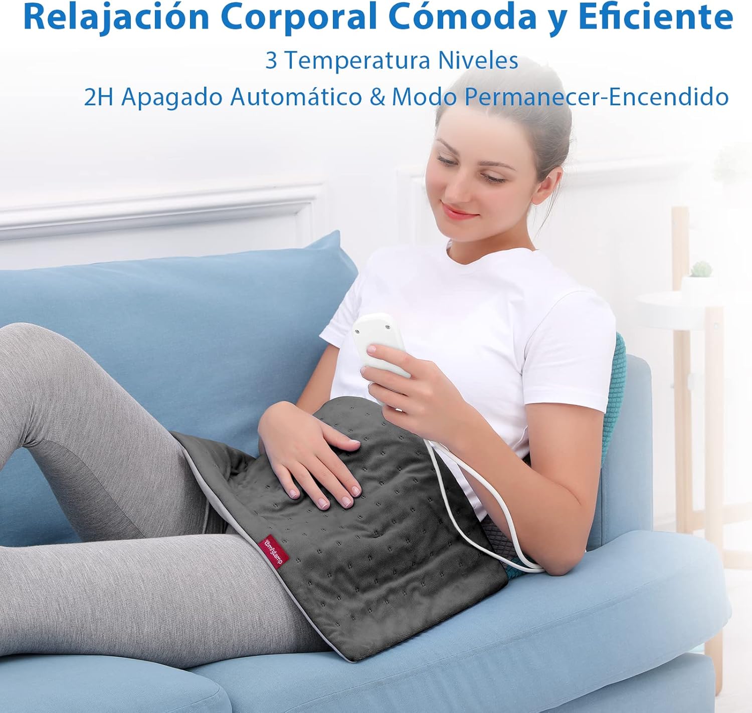 3 niveles de temperatura: la almohadilla térmica eléctrica Comfytemp tiene 3 niveles de temperatura que le permiten elegir la temperatura deseada para diferentes necesidades que se pueden regular con un interruptor de calefacción electrónico.