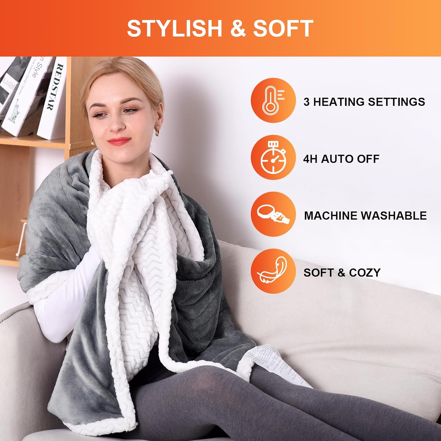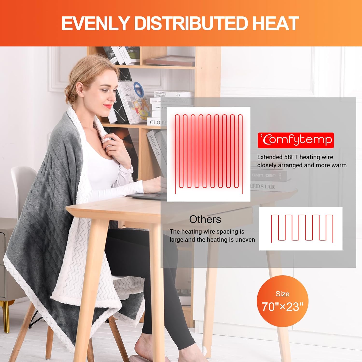 Q595 Comfytemp Manta térmica eléctrica de 70 x 23 pulgadas, chal térmico de franela suave