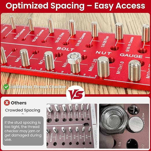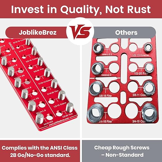 Q235.00 Comprobador de rosca, comprobador de roscas de 30 tuercas y pernos Tamaño de precisión: nuestro comprobador de roscas de tuerca y perno está meticulosamente elaborado a partir de mecanizado CNC para cumplir con el estándar ANSI Go & No-Go Class 2B, lo que garantiza un tamaño preciso tanto para roscas internas como externas. Di adiós a las dudas y al hardware que no coincide: adopta una precisión impecable sin esfuerzo. 30 tamaños de rosca de tuerca y perno: nuestro comprobador de roscas de tuerca y perno identifica instantáneamente 30 tamaños distintos, cubriendo tamaños de rosca métrica de M3 x 0.5 a M14 x 2.0, y roscas imperiales de #4 – 40 Grueso a 1/2 – 20 Fino. Cada tamaño viene con una rosca macho (para tuercas y arandelas) y una rosca hembra (para pernos y tornillos), lo que garantiza la compatibilidad con todos tus accesorios estándar Fácil de usar: nuestro medidor de identificación de pernos y tuercas simplemente coincide con sus tuercas y pernos con las ranuras correspondientes para identificar el tamaño y el paso con precisión. El diseño intuitivo y las marcas grabadas con láser fáciles de leer hacen que usar nuestro comprobador de hilos sea muy fácil, incluso para principiantes. Diseño multifuncional: nuestro medidor de rosca de tornillo está hecho de aluminio 6061 con un elegante acabado anodizado, lo que garantiza durabilidad y resistencia. Prácticas reglas de 5.9 in y 6 pulgadas en ambos lados. Es una herramienta diseñada para una fiabilidad y comodidad duraderas. Opciones de montaje versátiles: Con un práctico orificio para colgar y cuatro patas de silicona antideslizantes, nuestro comprobador de roscas ofrece opciones de montaje versátiles. Cuélgalo en la pared de tu taller para un fácil acceso, o déjalo reposar de forma segura en cualquier superficie mientras trabajas, ¡la elección es tuya! Enviamos a toda la republica pago contra entrega. Aceptamos tarjeta de crédito y debito.
